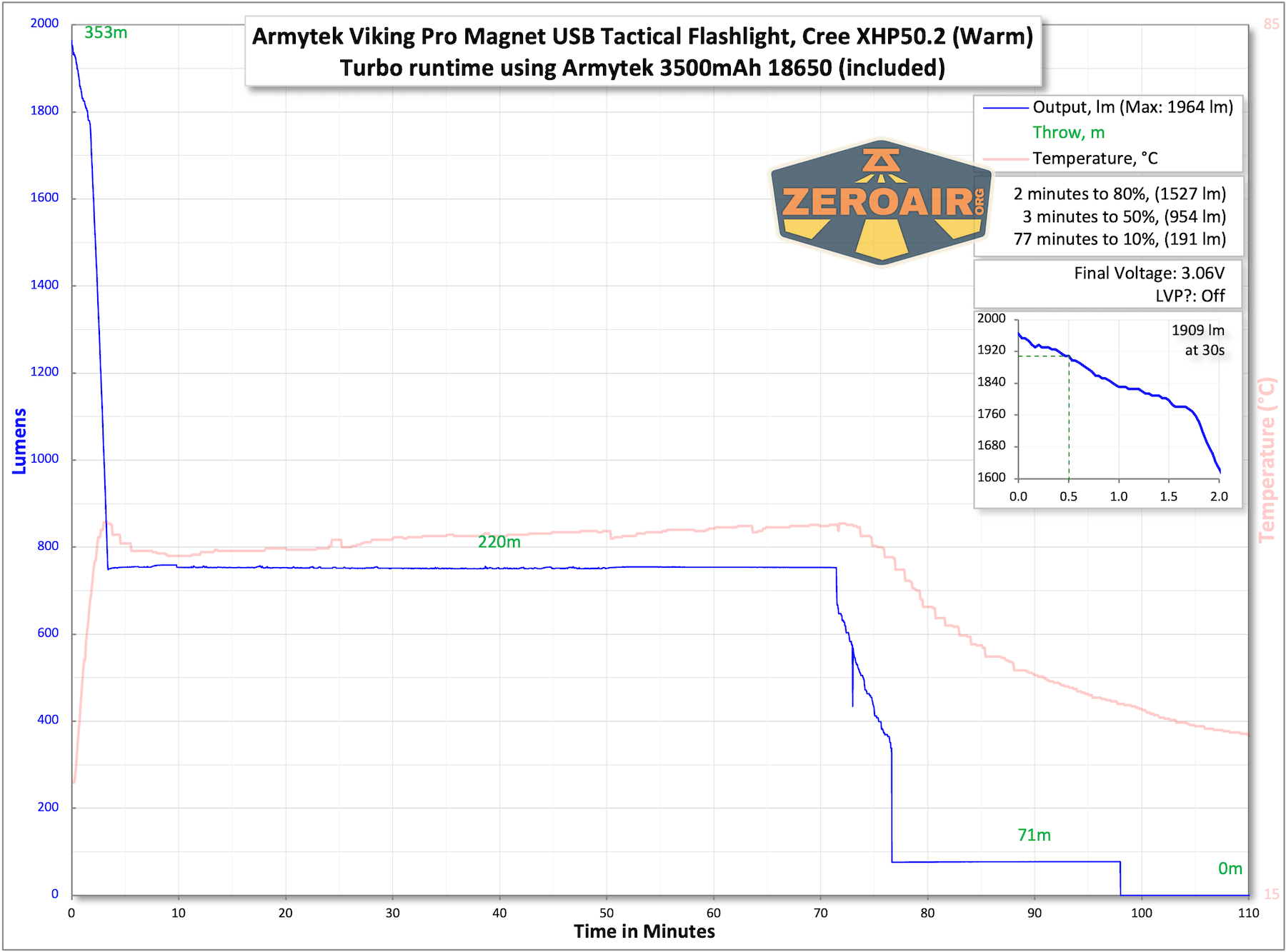 | Measured Lumens (at 30s) | 1909 (93.1% of claim)^ |