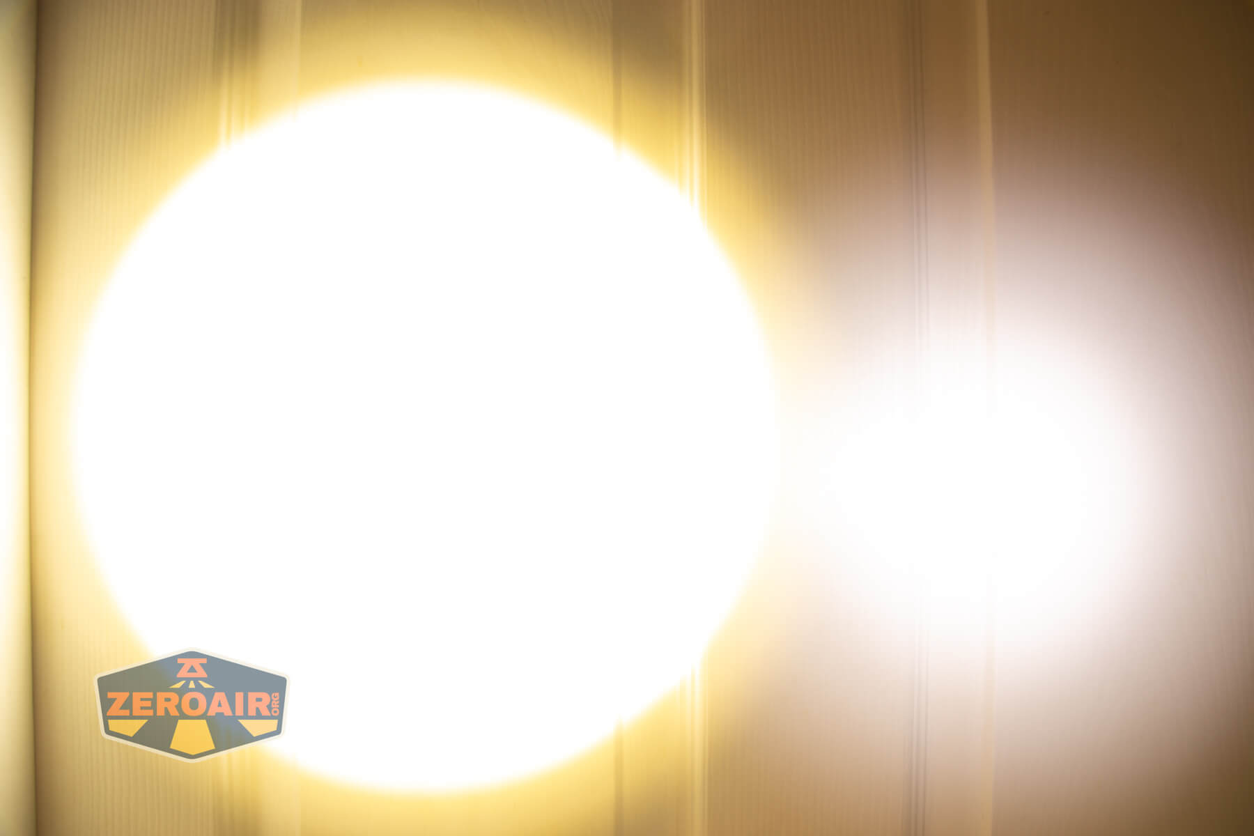 I keep the test flashlight on the left and the BLF-348 reference flashlight on the right. These photos are taken around 18 inches from the door.