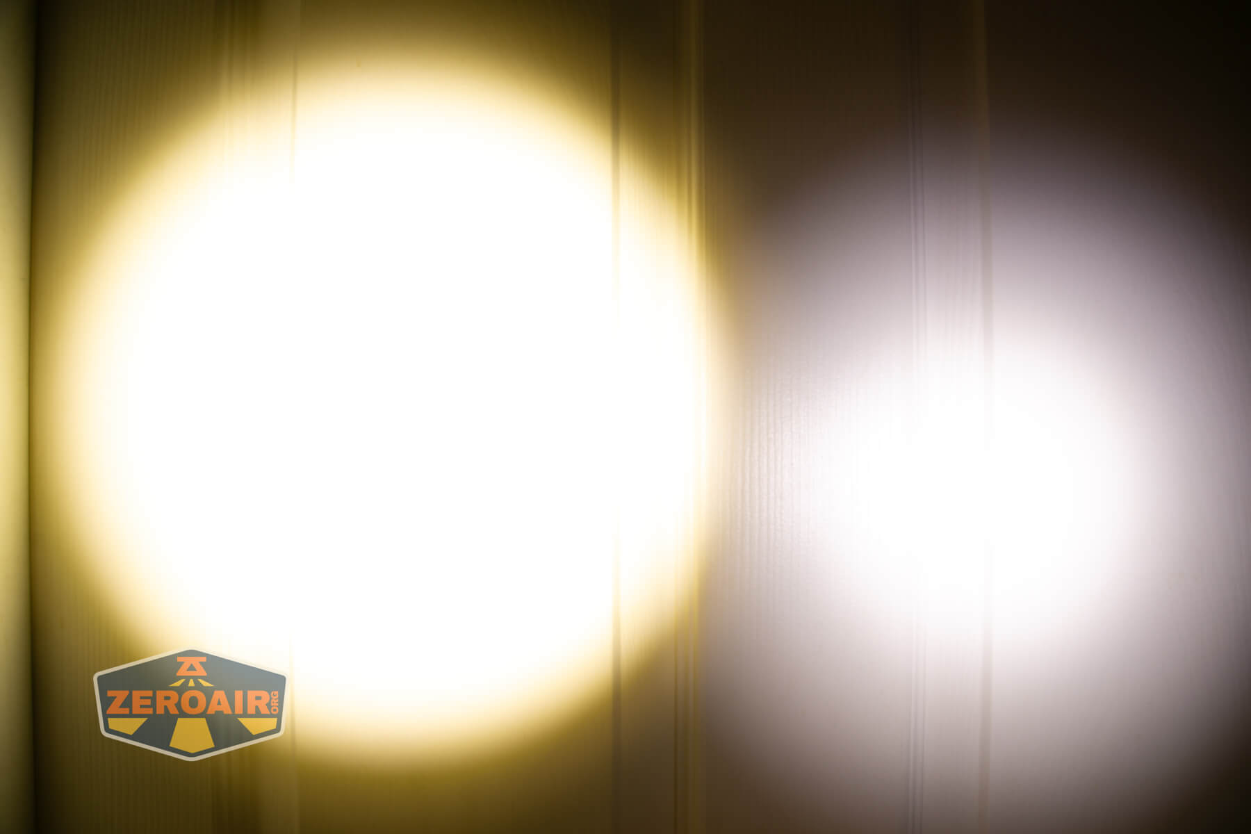 The CCT of this Armytek Viking Pro Magnet USB tactical flashlight is definitely in the warm realm, at around 4200K. CRI is low. Still, it’s a solid output!