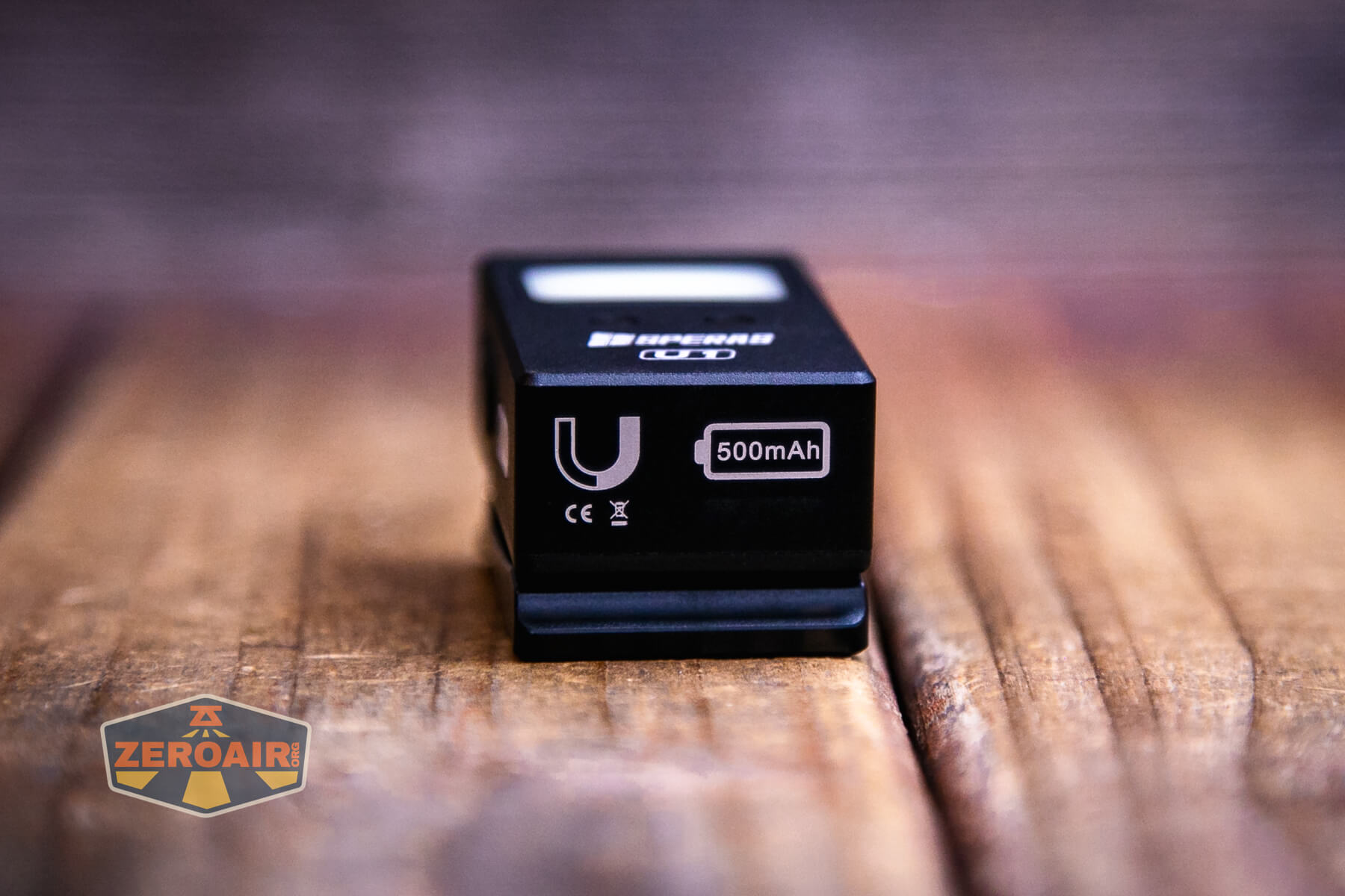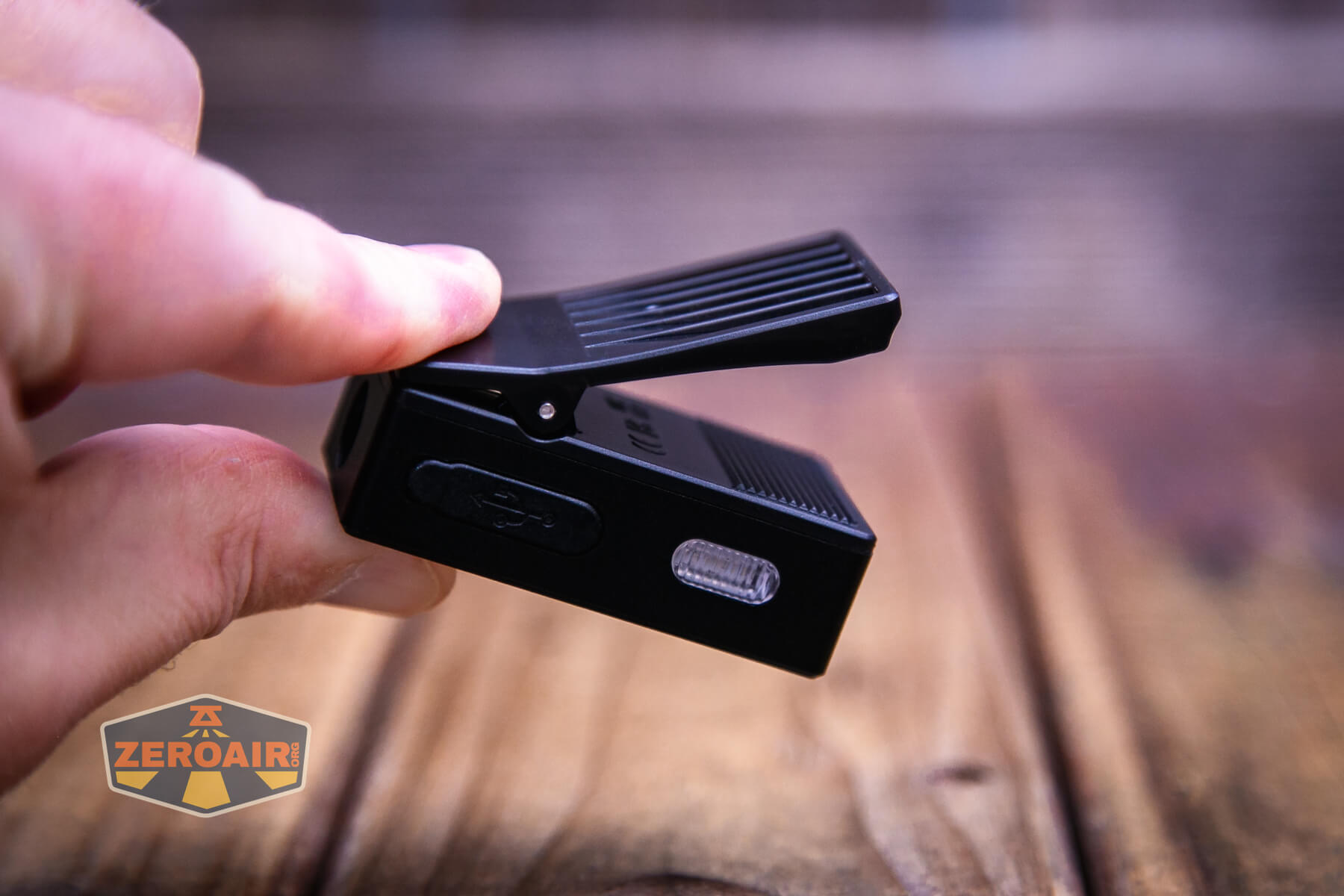 The Speras U1 multi-function clip light offers USB-C charging. The charge port is on the side and is opposite to the dual e-switches.
