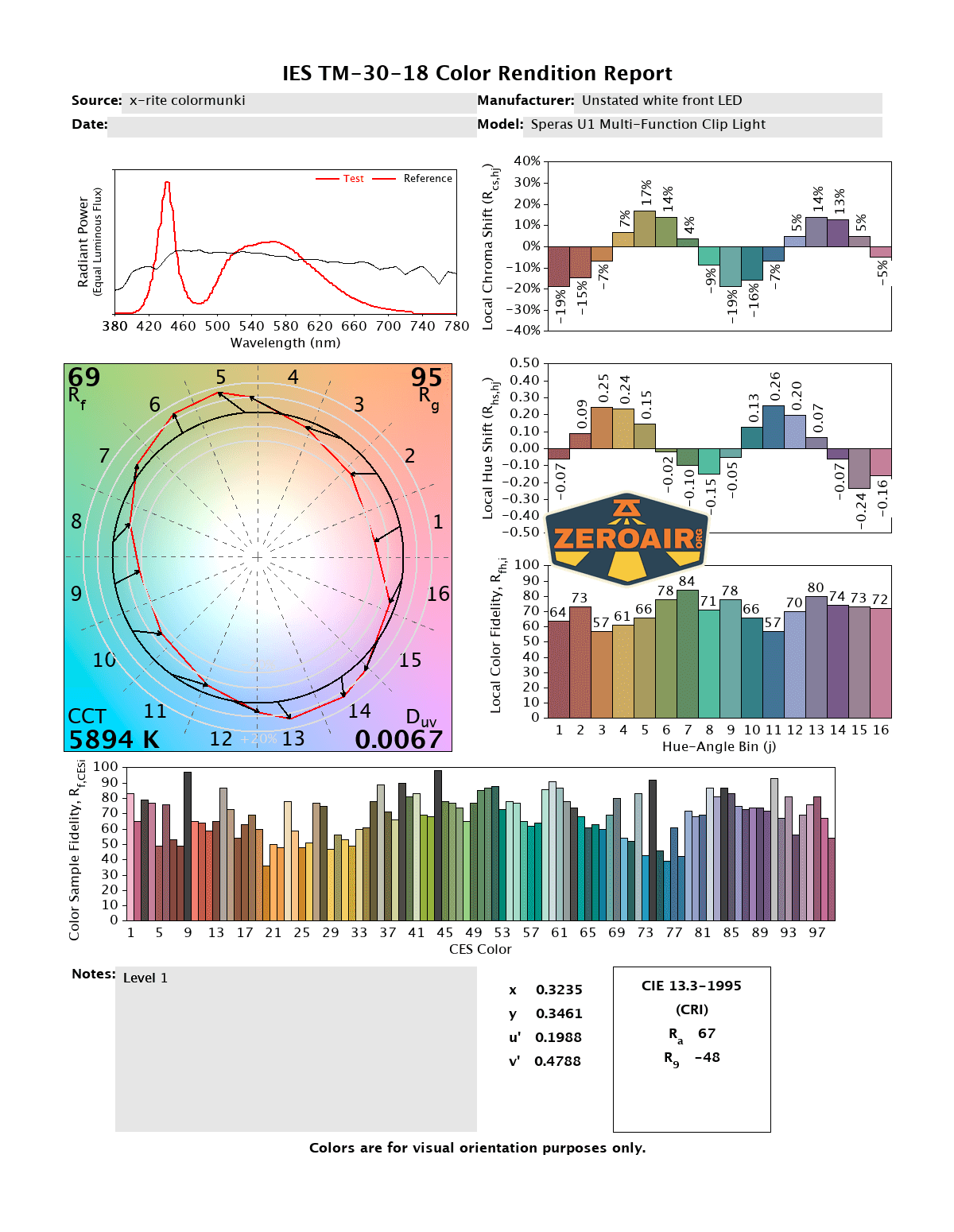 LED Color Report (CRI and CCT)