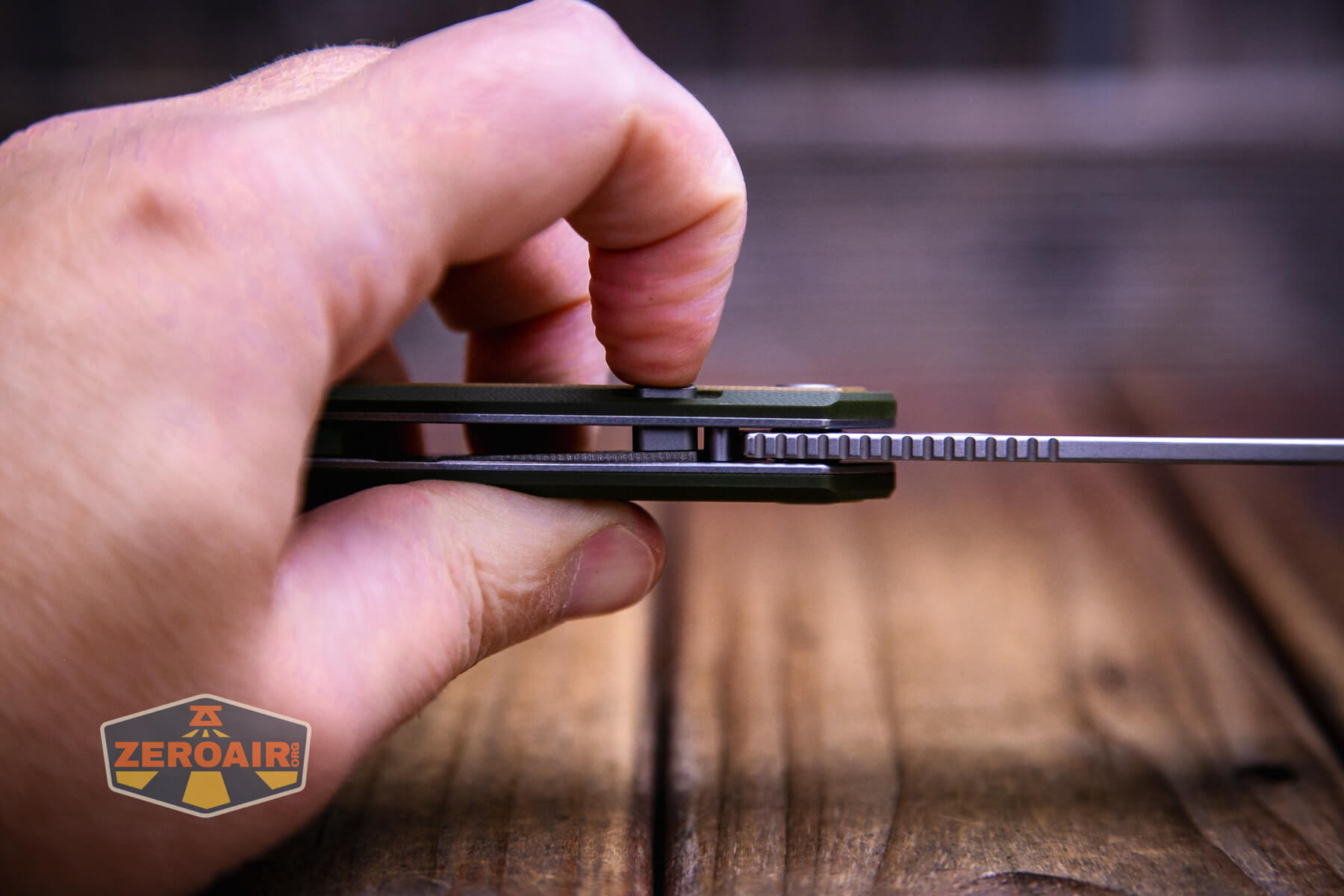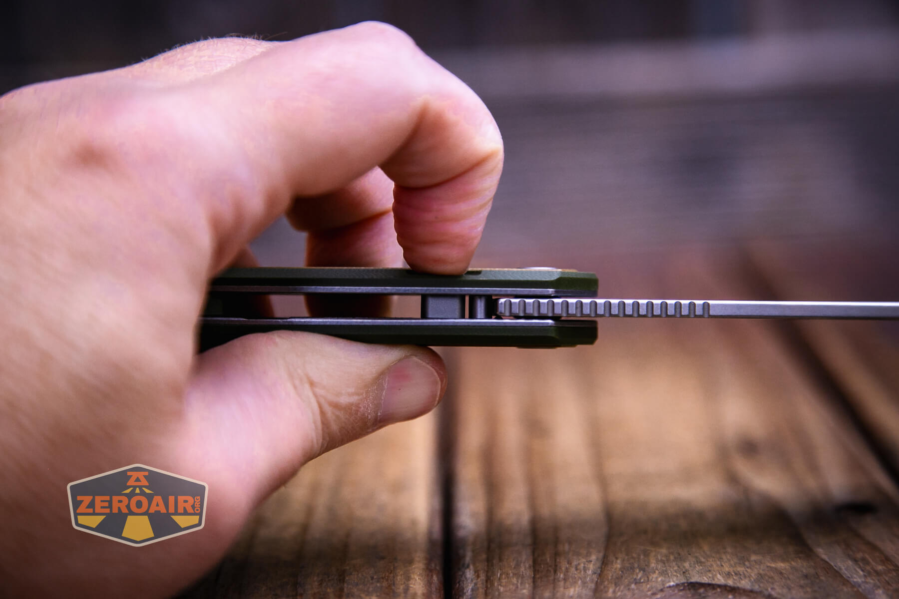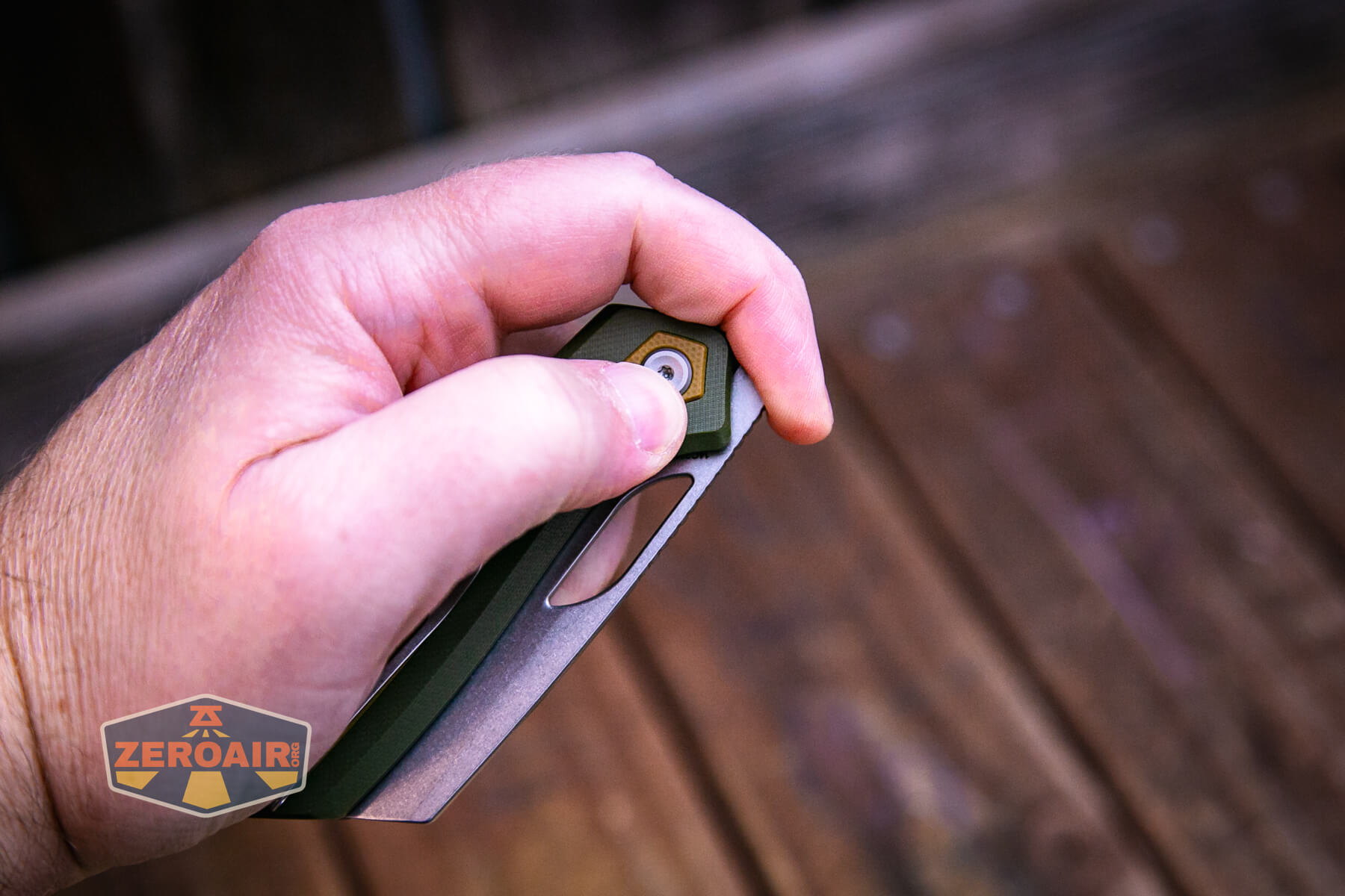 I can’t say that the top-liner lock is the most ergonomic action, but I will say I’m pleased that it totally keeps my fingers out of the path of the blade. That’s a huge win for me, and enough to make me like this unlock style, regardless of ergonomics.
