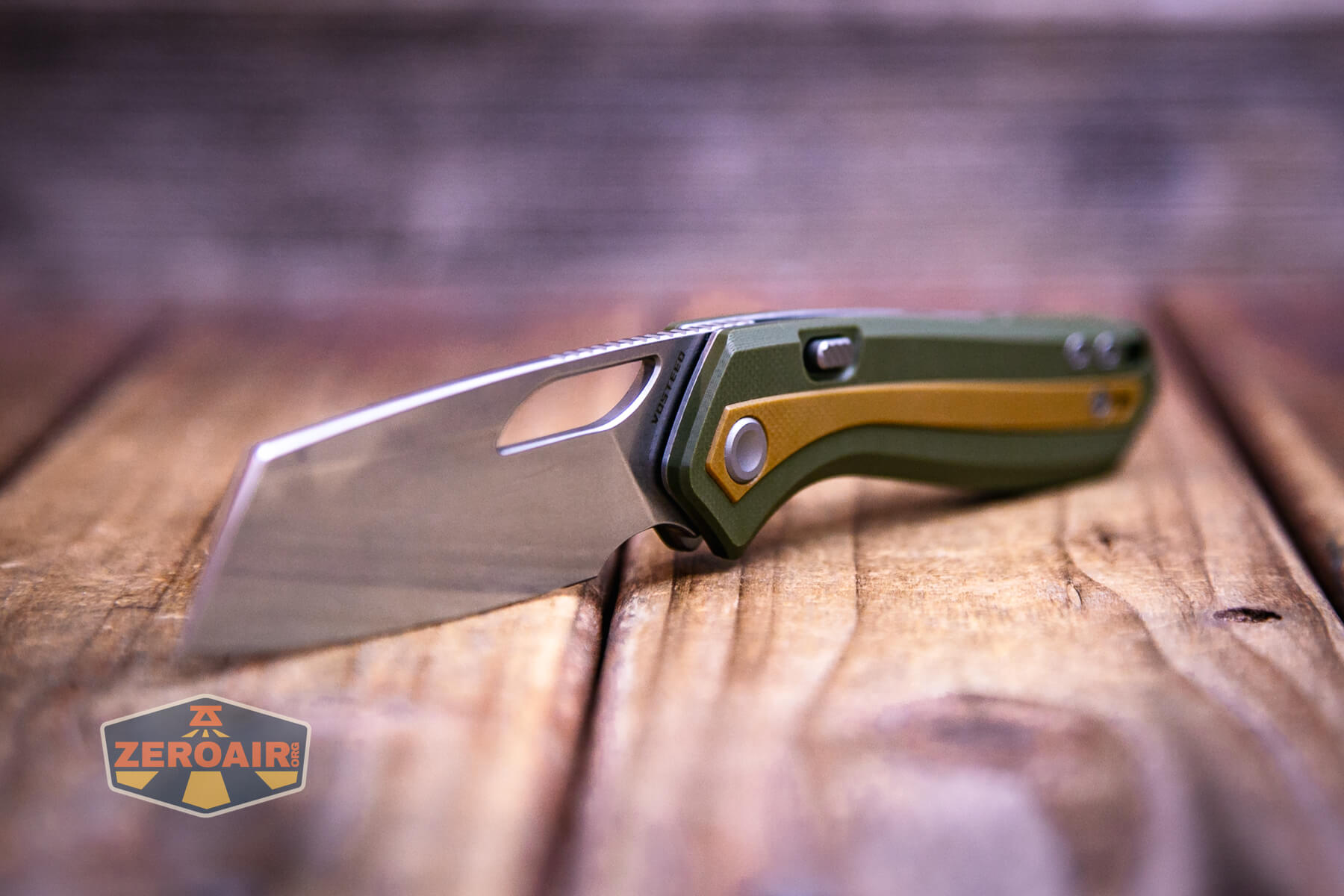 All versions included a handle that has two-tone of one variety or another. The two flavors here are both G10 – green and khaki. But other versions are available that (for example) use aluminum and “ocean Micarta” (and command a premium price!)