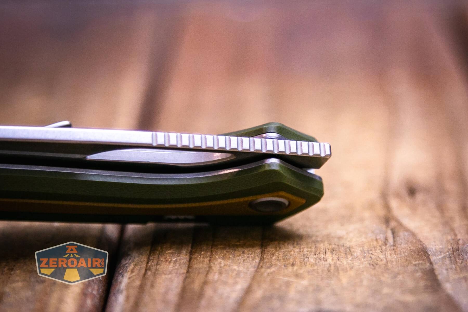In the flipper area, the blade has some grip. This grip mirrors that of the backspacer.