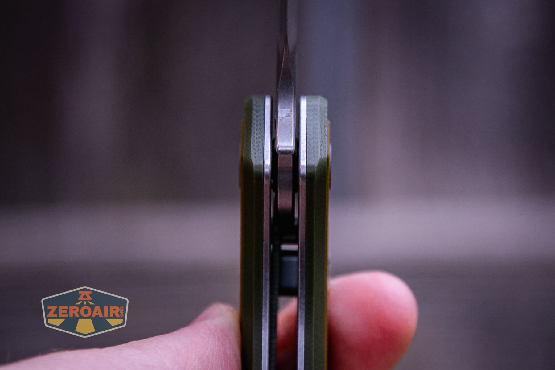 The scales are fully lined, and the liners aren’t hidden. They play a nice role in the design, as they are as big as the G10, and thus visible on the edges.
