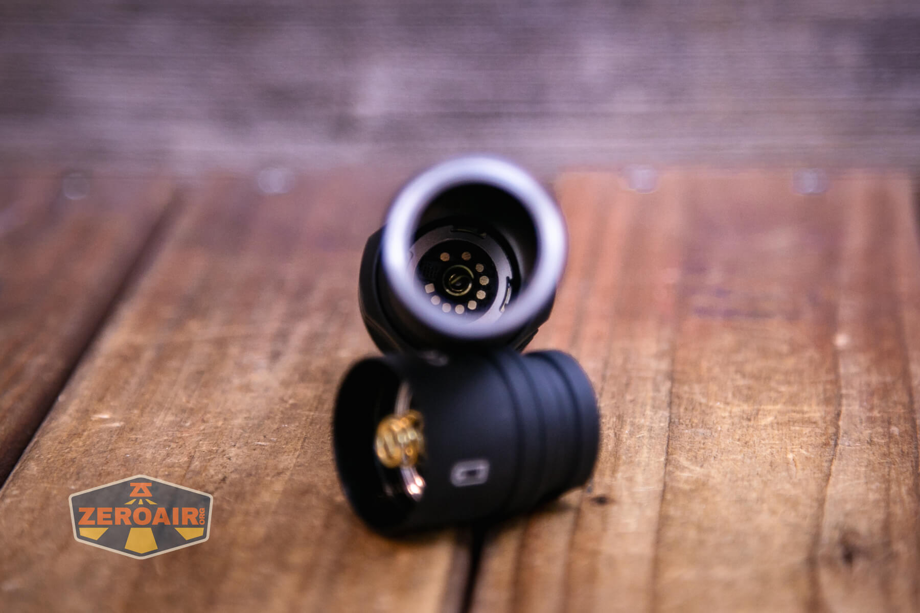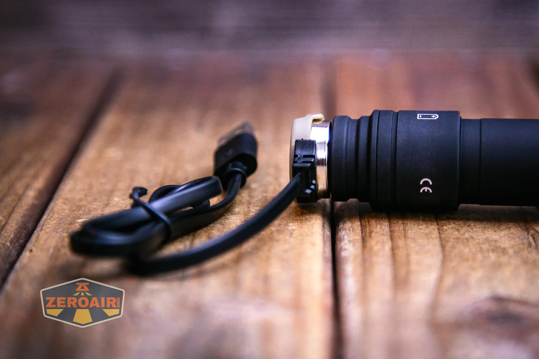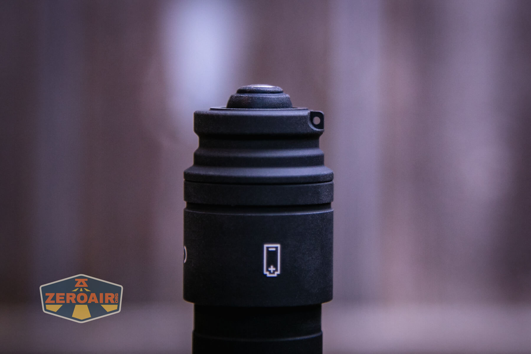The charging connector has an indicator – when charging, it’s red. When charging is complete, it turns green. Unlike some other Armytek lights, to charge the Viking Pro, the parts need to be fully tightened.