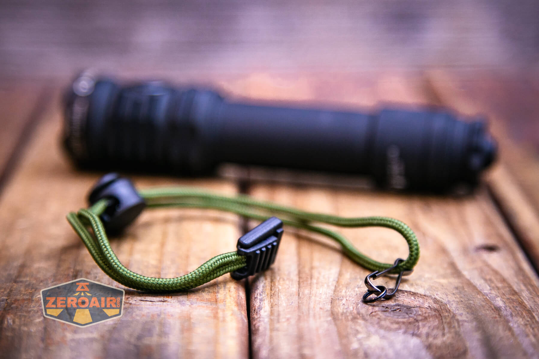 A lanyard is included for attaching to the Armytek Dobermann Pro Max tactical flashlight. It can attach through this little loop on the tail.