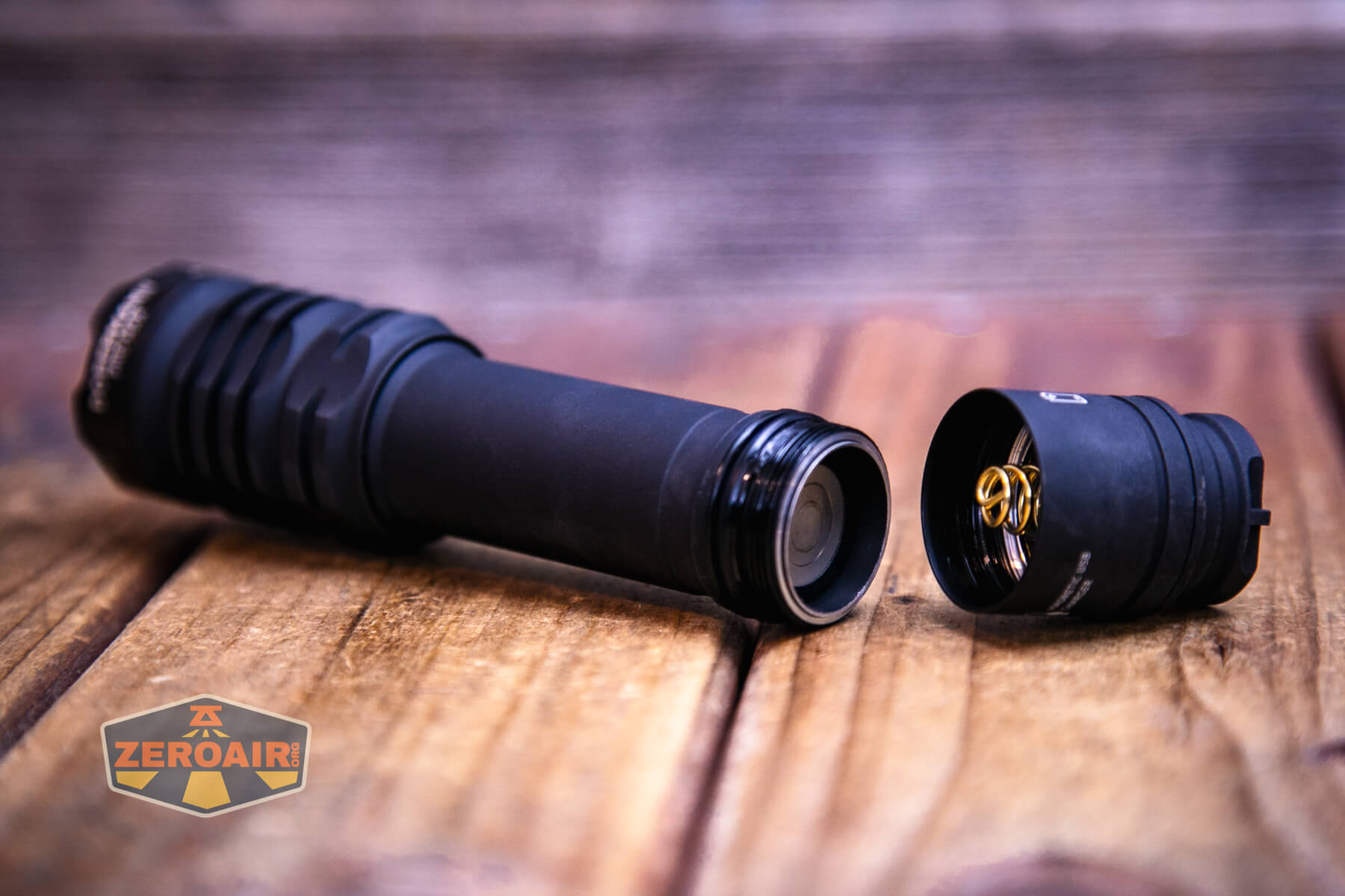 Again, as you’d expect and want on a tactical light, both the head and tail have robust springs.