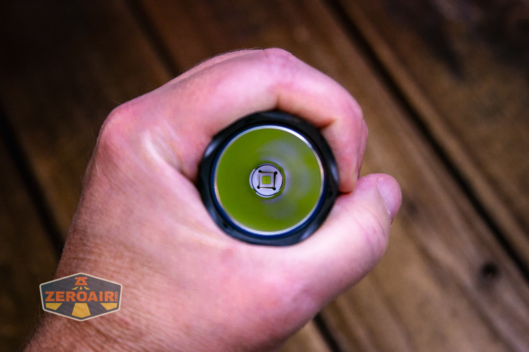 This light ranges from cool white to very cool white and has low CRI. The beam profile is very tight and throwy, though, so we often forgive cool white low CRI output on tactical lights like this.