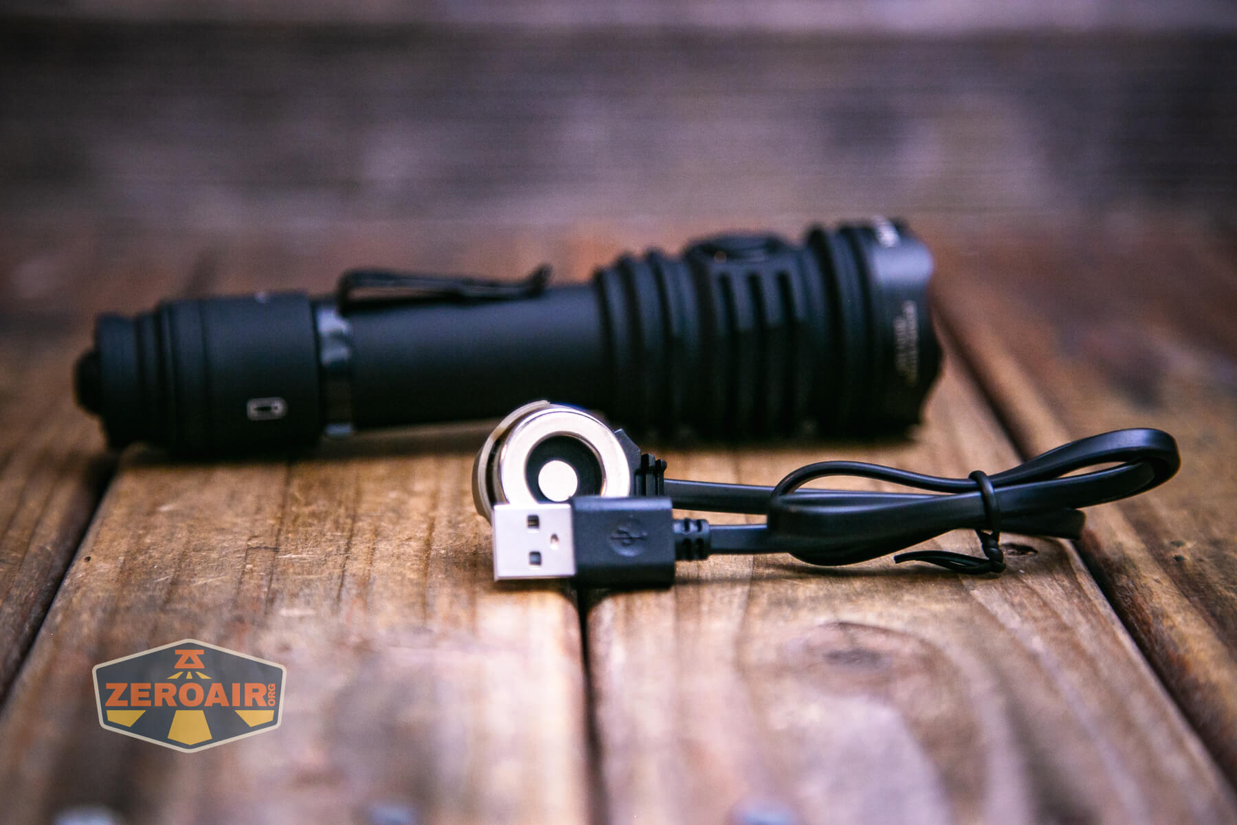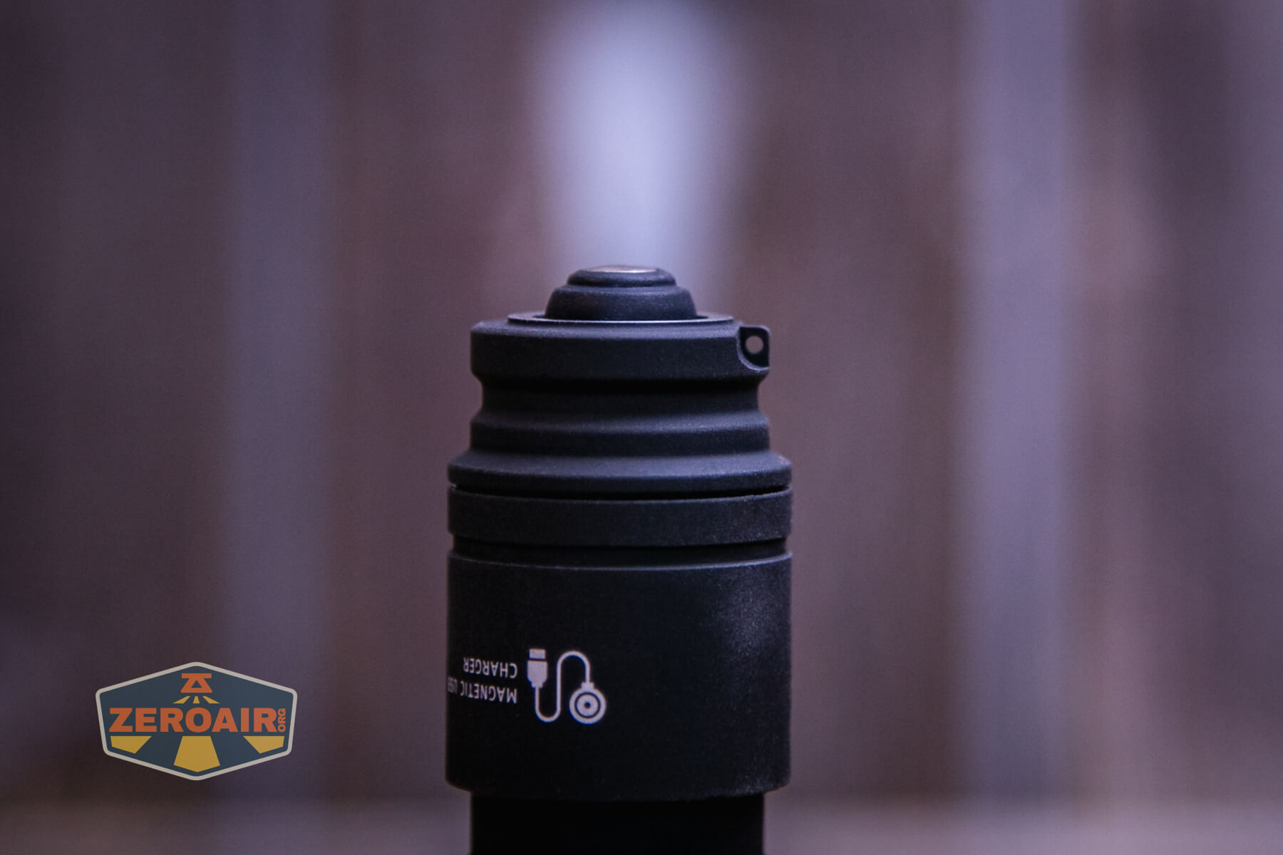 The charging connector has an indicator – when charging, it’s red. When charging is complete, it turns green. Unlike some other Armytek lights, to charge the Viking Pro, the parts need to be fully tightened.