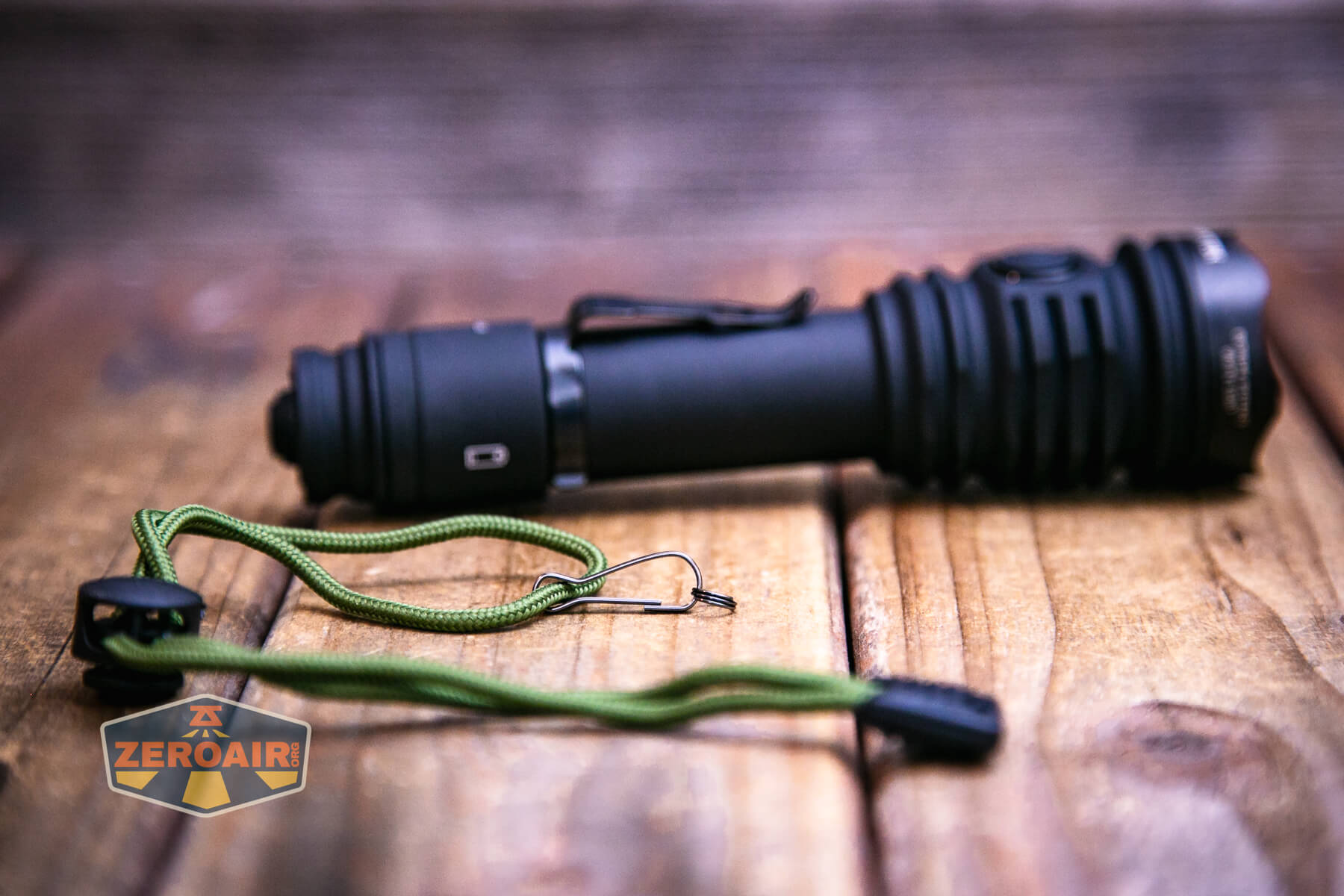 A lanyard is included for attaching to the Armytek Predator Pro Max flashlight. It can attach through this little loop on the tail.
