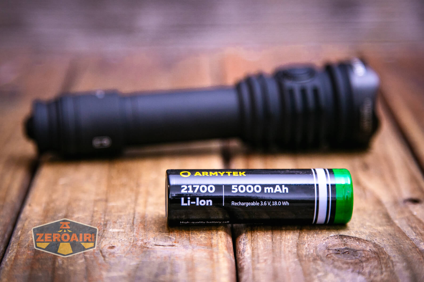 The Armytek Predator Pro Max flashlight runs a single lithium-ion cell. In this case, a 5000mAh 21700 is included. It’s a standard cell.