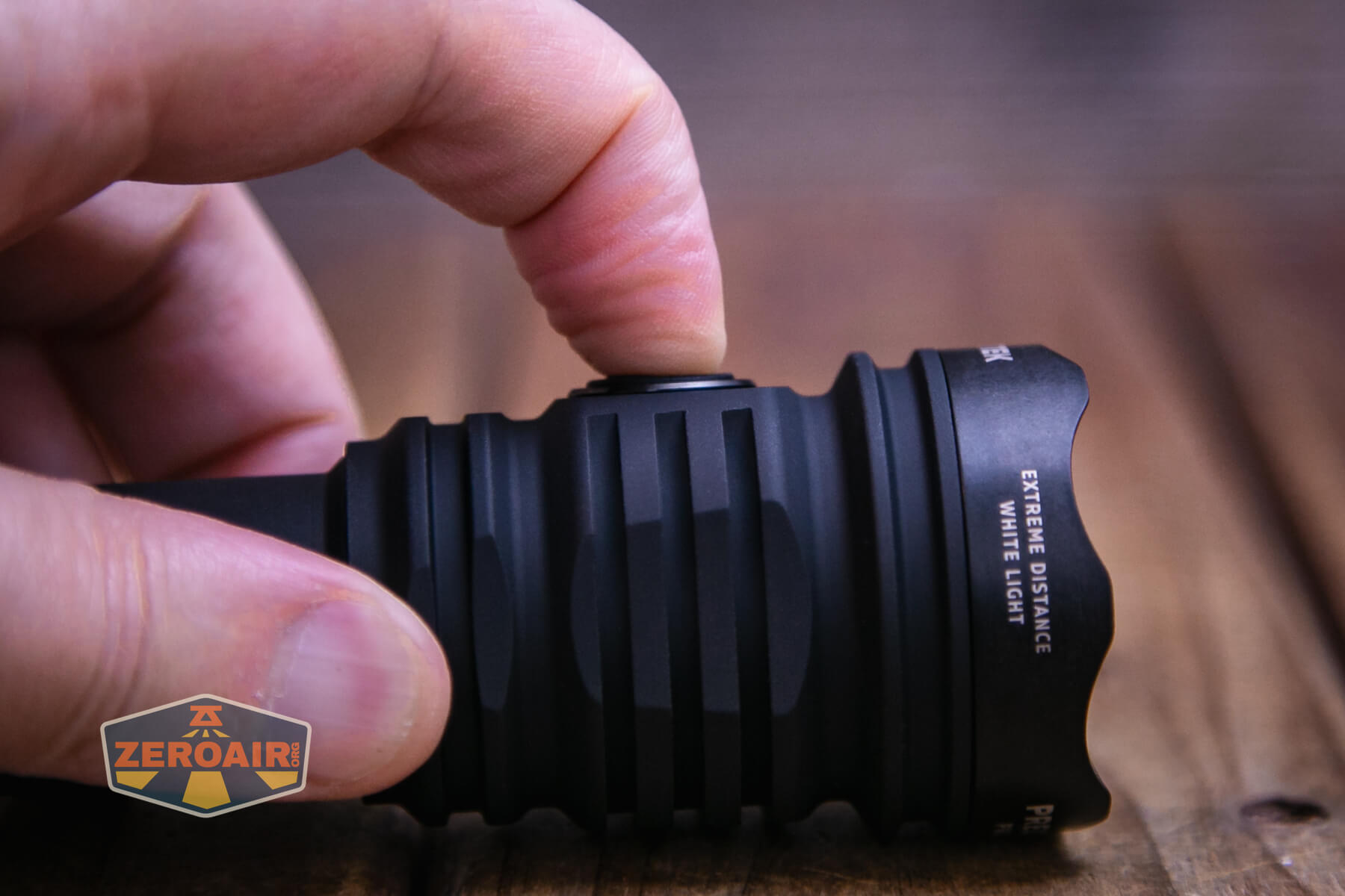 The Armytek Predator Pro Max flashlight is controlled by a tail switch and a side e-switch, too. In fact, I think both the switches are e-switches.