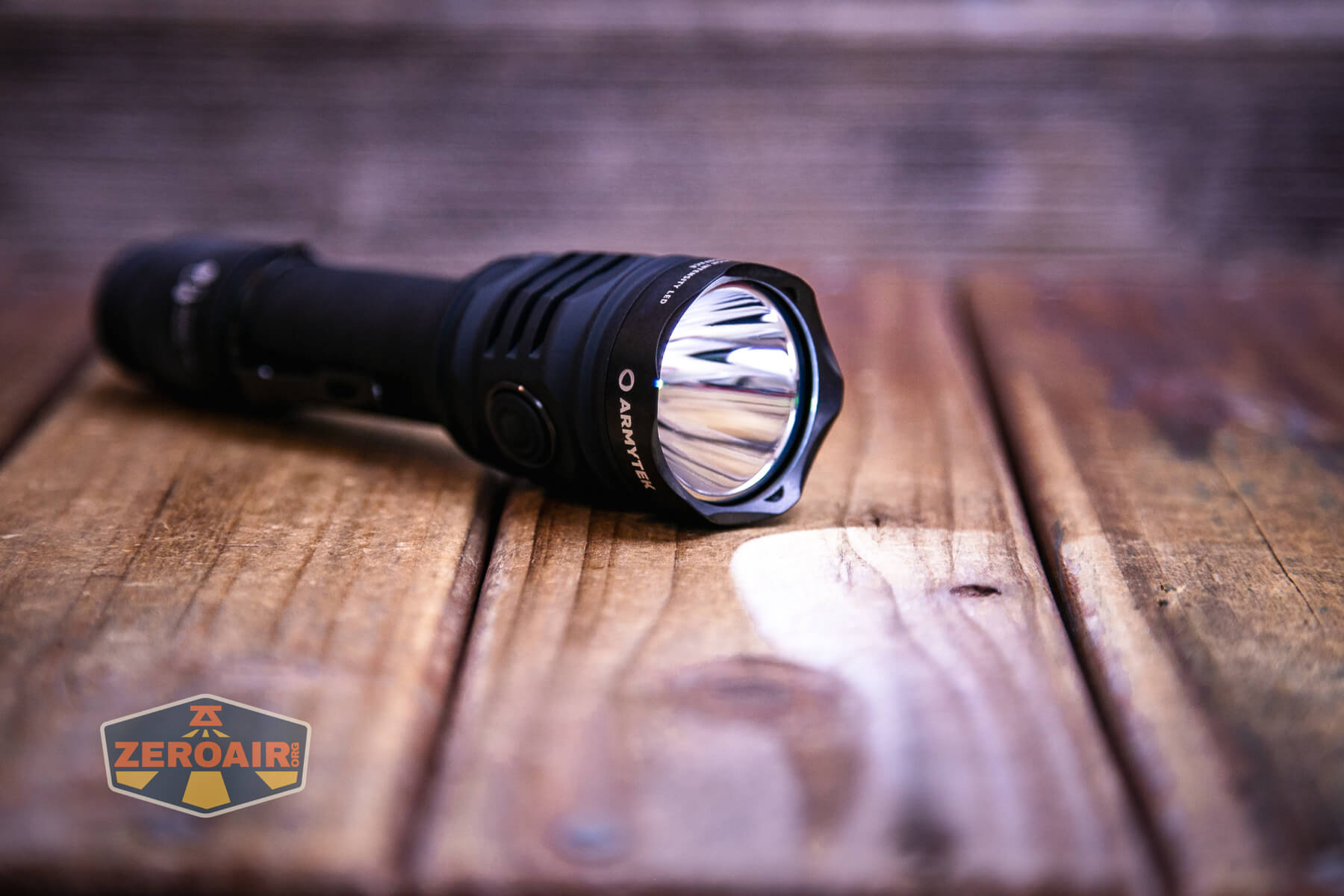 I don’t believe Armytek states what emitter is used in this light, but I think it’s a Luminus SFT70. It’s cool white and has a smooth reflector.