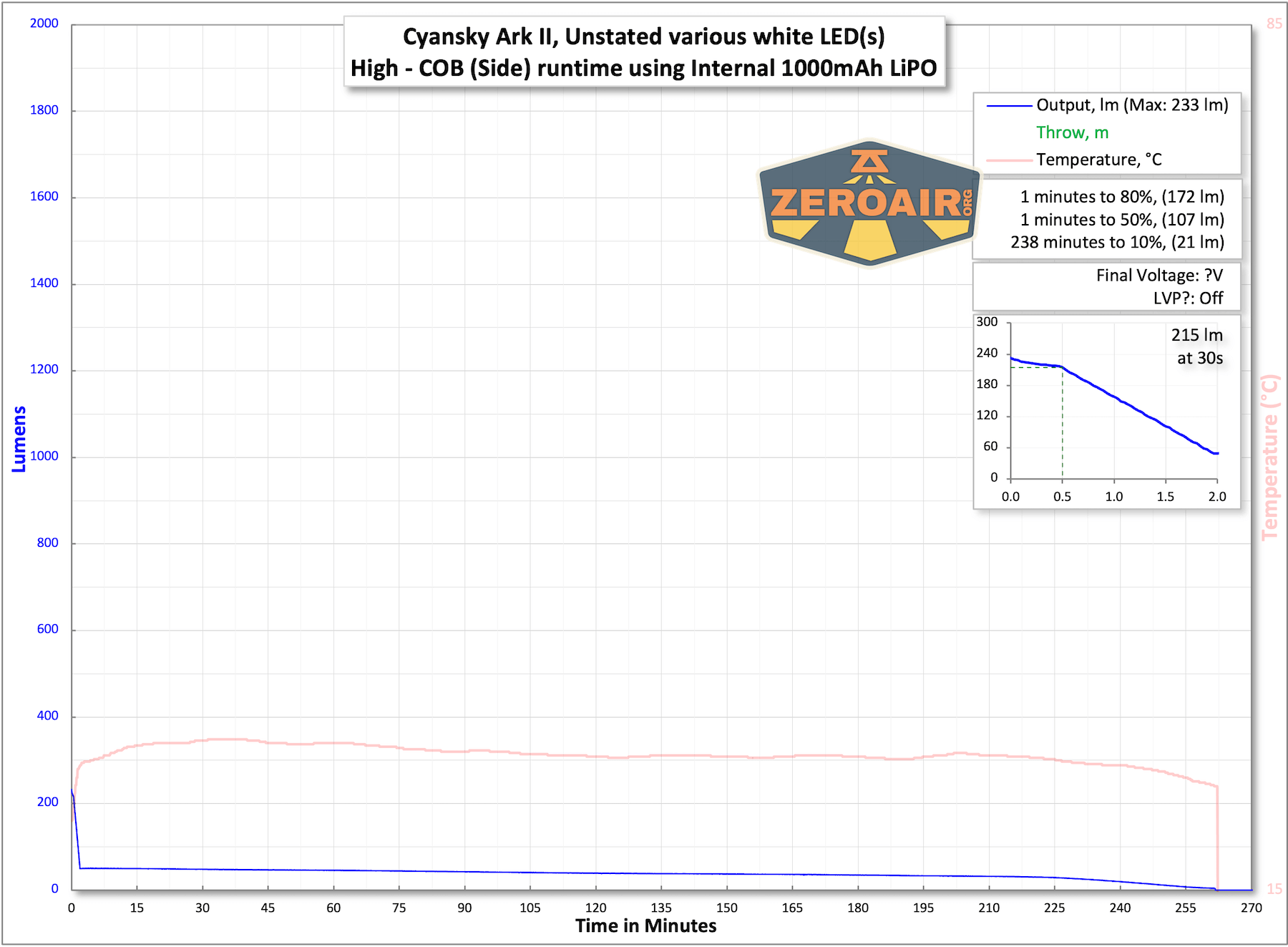 | Medium – COB White | 260 | 2.5h | 233 (0s) 215 (30s) |