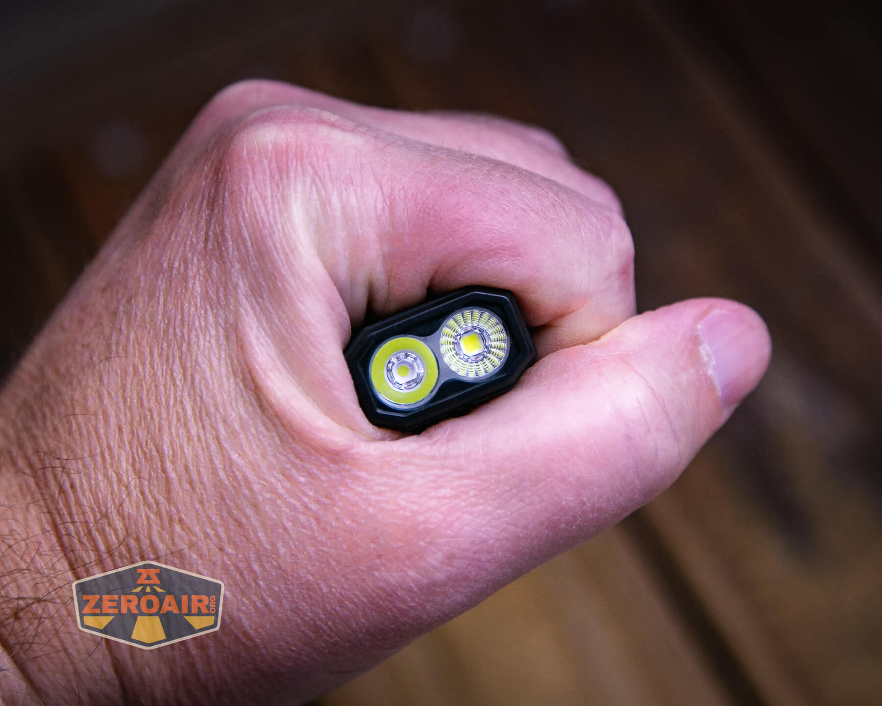 Also in the photo above, my Standard Reference Material (SRM) flashlight is the Hanko Machine Works Trident, an 18350 light. While I have not reviewed or tested the Gunner Grip version seen here, I have tested a Hanko Machine Works Trident Total Tesseract in brass. I love the Trident, and it’s a striking contrast to the inexpensive Convoy S2+, another great SRM.