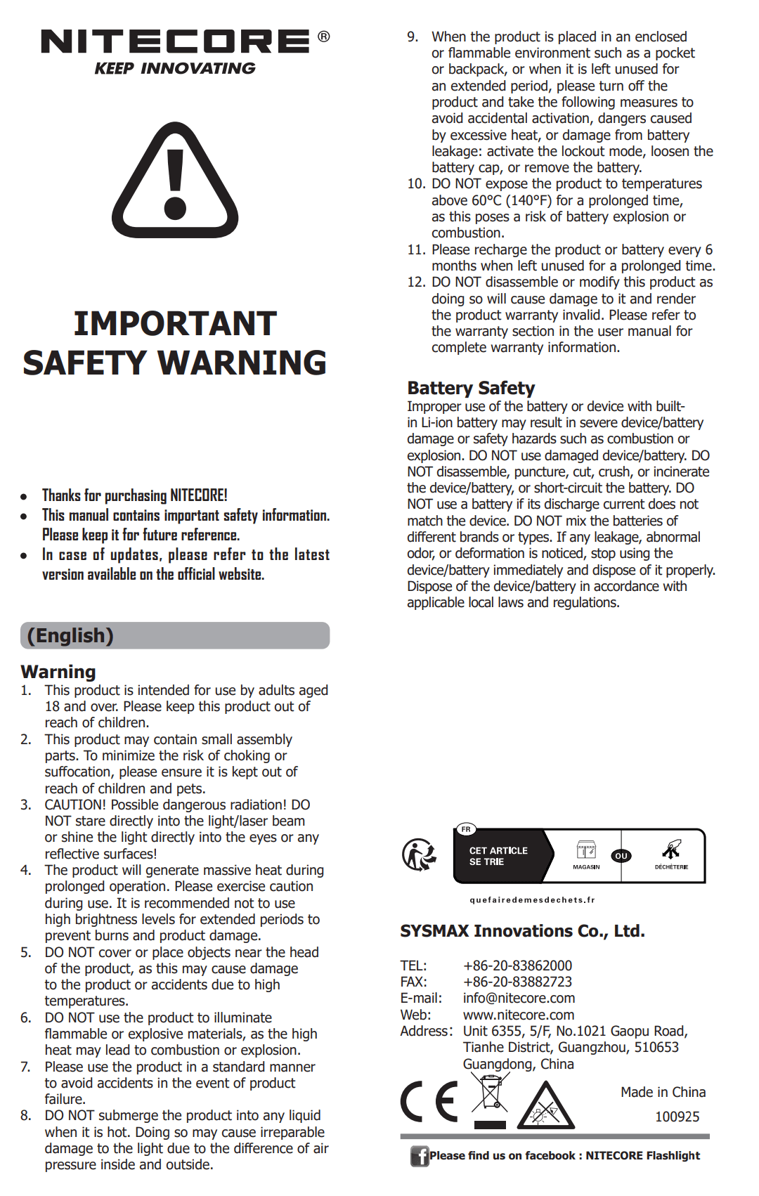 | Item provided for review by: | Nitecore |