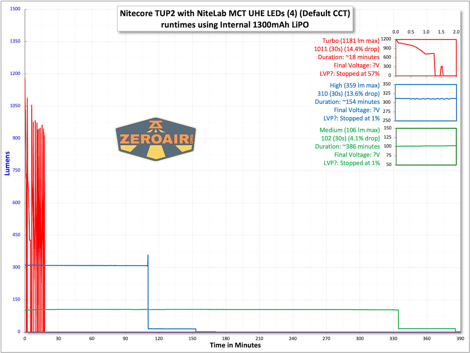 | Mode | Mode Claimed Output (lm) | Claimed Runtime | Measured Lumens |