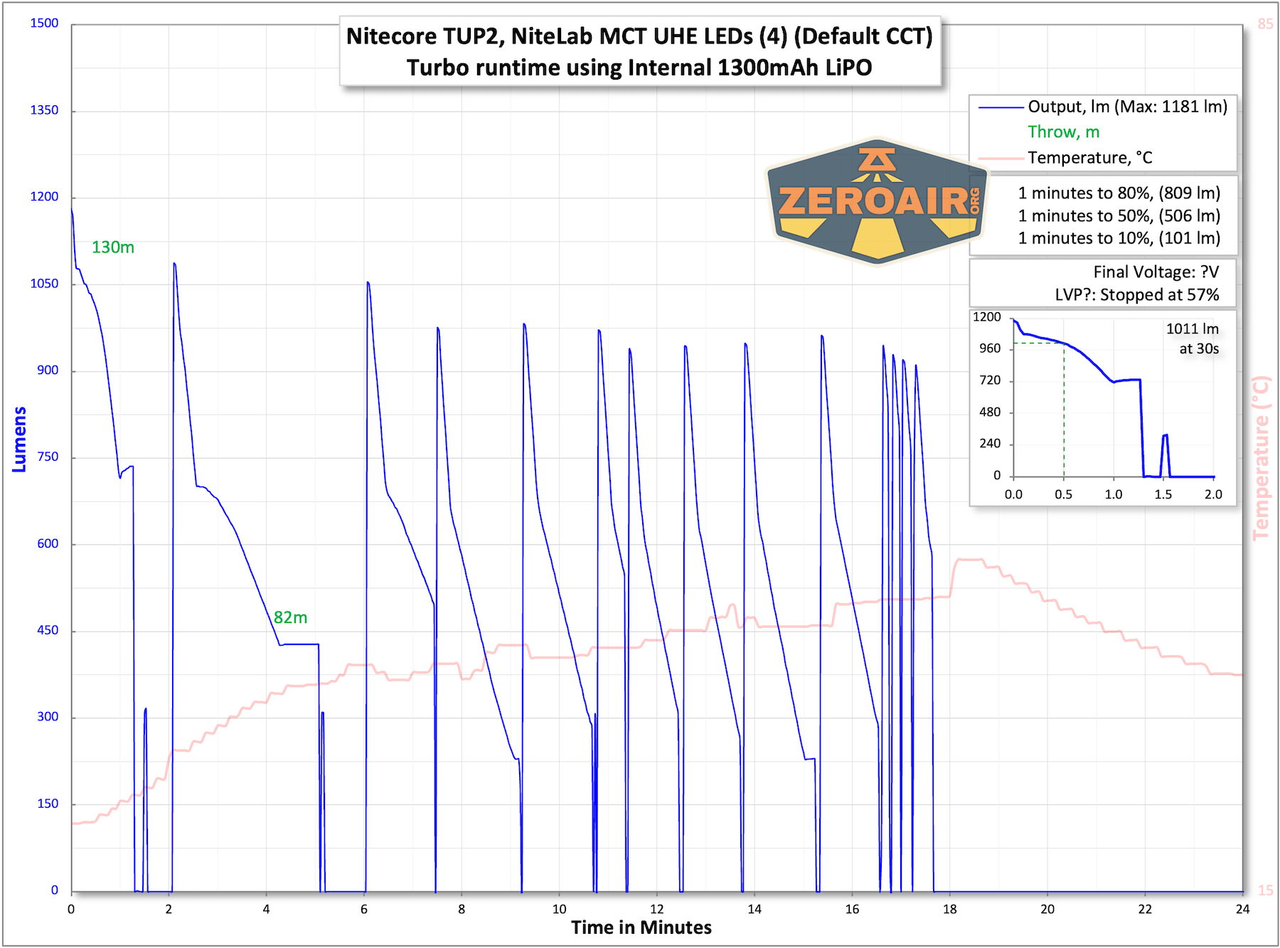 | Measured Lumens (at 30s) | 1011 (84.3% of claim)^ |