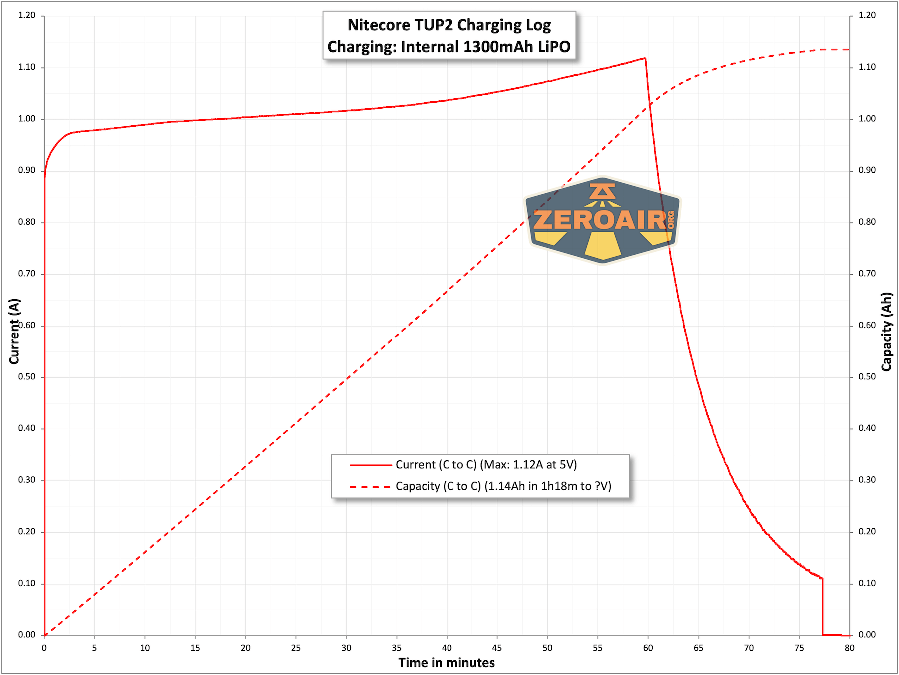 Charging looks great, at around 1C, which in this case, is around 1A. This finishes in around an hour and a quarter.