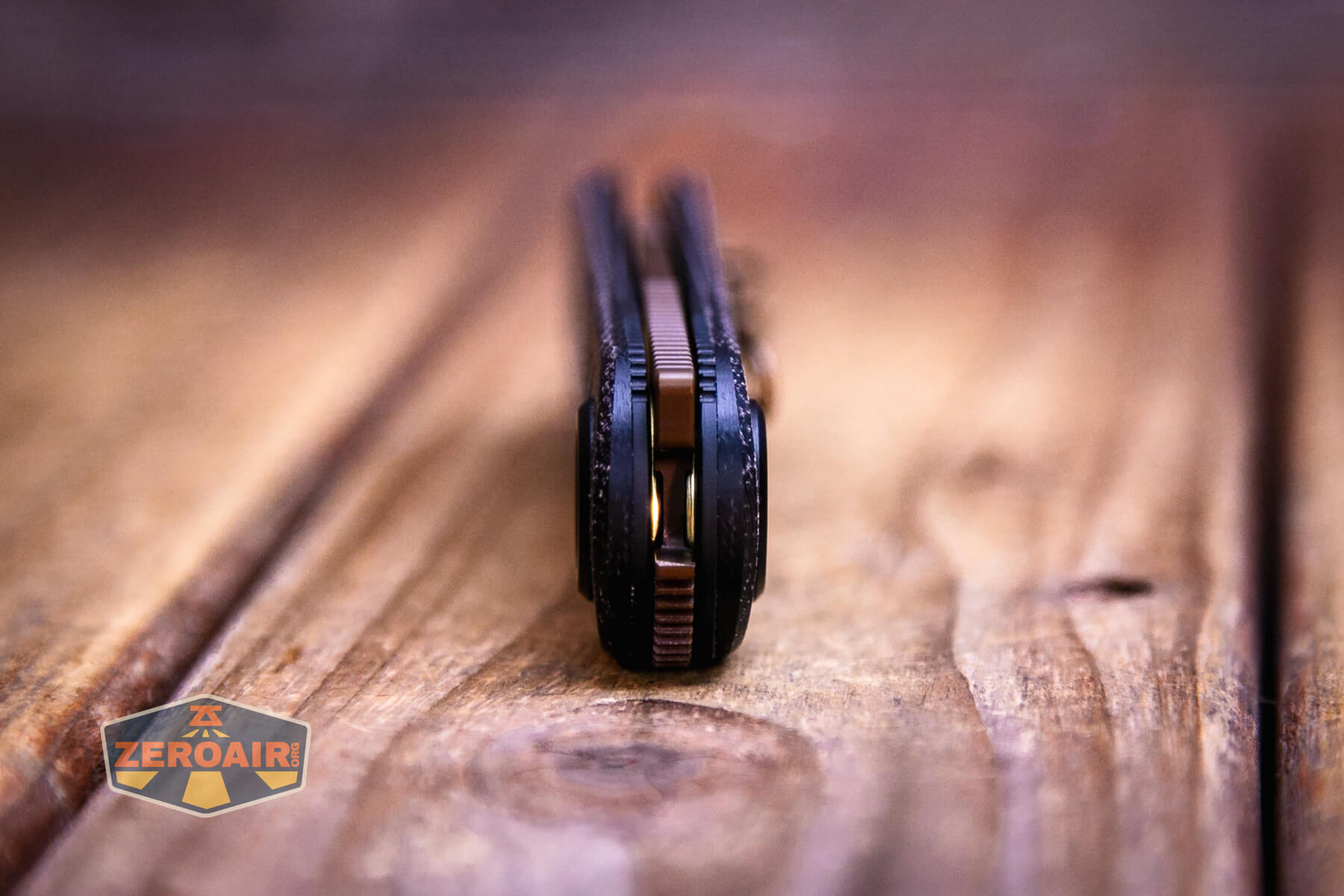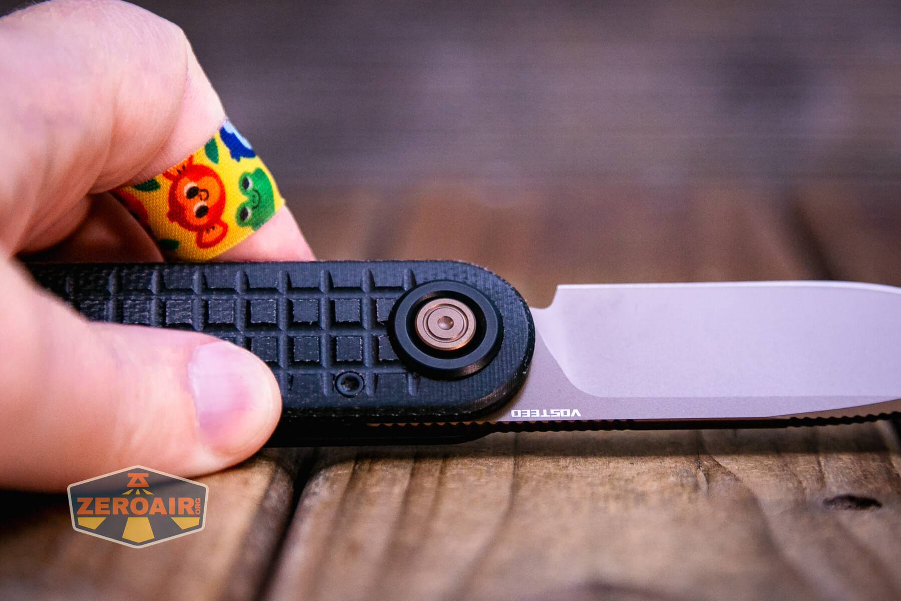 The build quality is very good. But that’s no surprise – all the other Vosteed knives I’ve handled have been great, too. There’s no backspacer here, but the metal liners keep the knife very stiff anyway.
