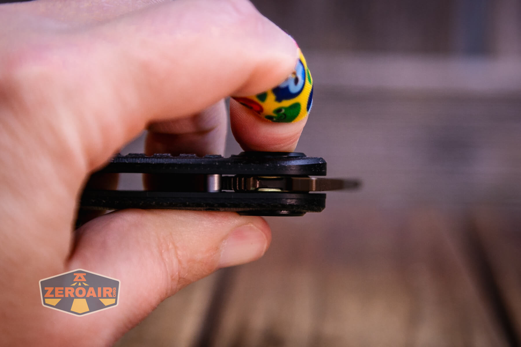 The first is what I’d consider a more traditional flipping style. That is flipping with the index finger right over the top of the blade. Note you don’t flip (in this way) via the flipper tab.