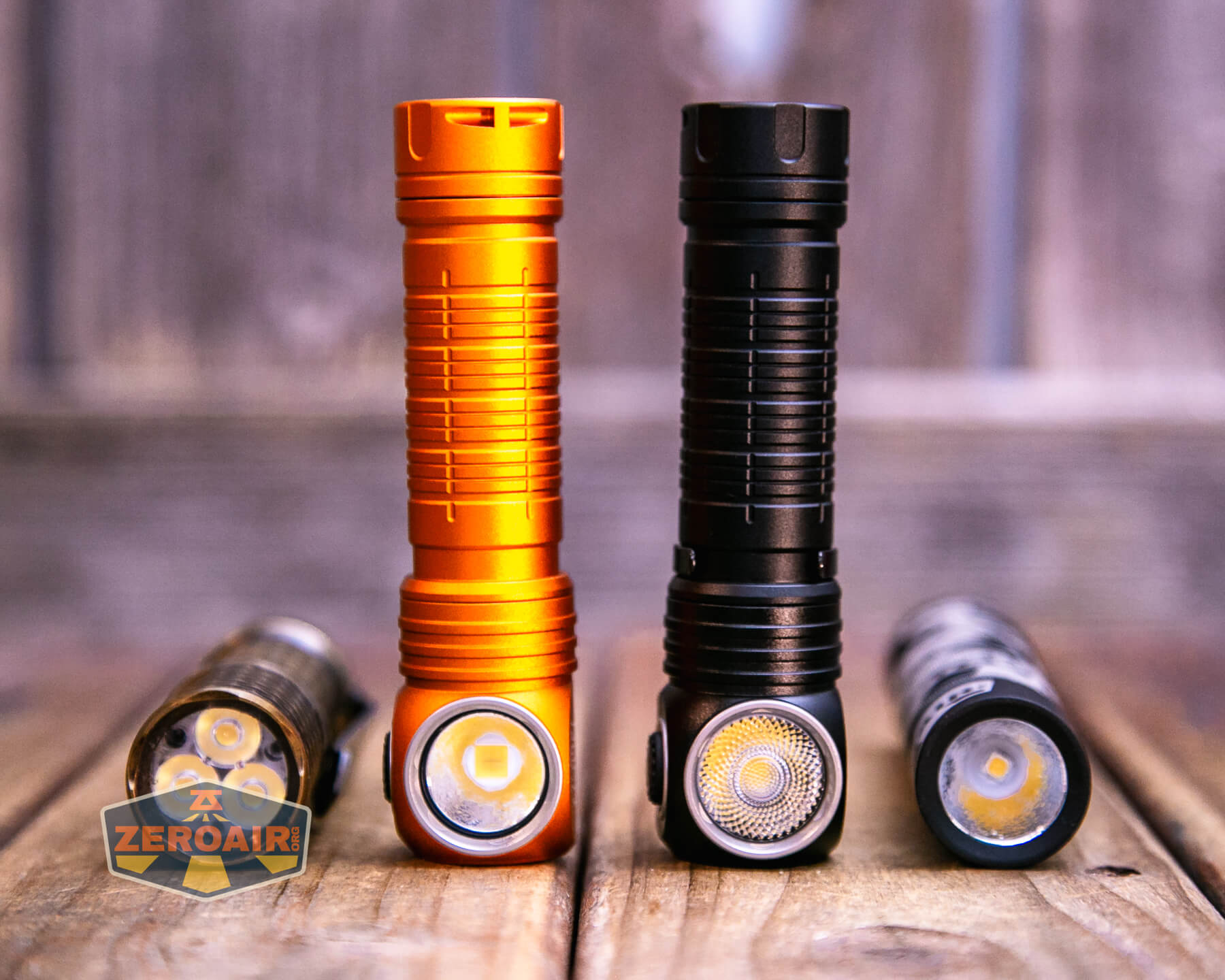 Also in the photo above, my Standard Reference Material (SRM) flashlight is the Hanko Machine Works Trident, an 18350 light. While I have not reviewed or tested the Gunner Grip version seen here, I have tested a Hanko Machine Works Trident Total Tesseract in brass. I love the Trident, and it’s a striking contrast to the inexpensive Convoy S2+, another great SRM.