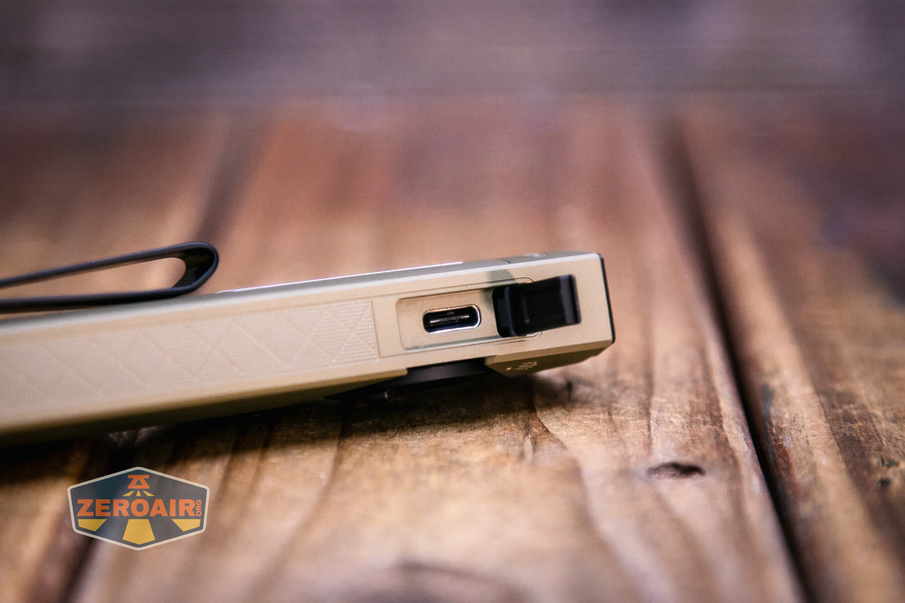 The Olight ArkPro Ultra EDC flashlight offers USB-C charging! The charge port is covered by the same type of cover we have seen recently on some of the Oclip lights (for example, the Oclip Pro).