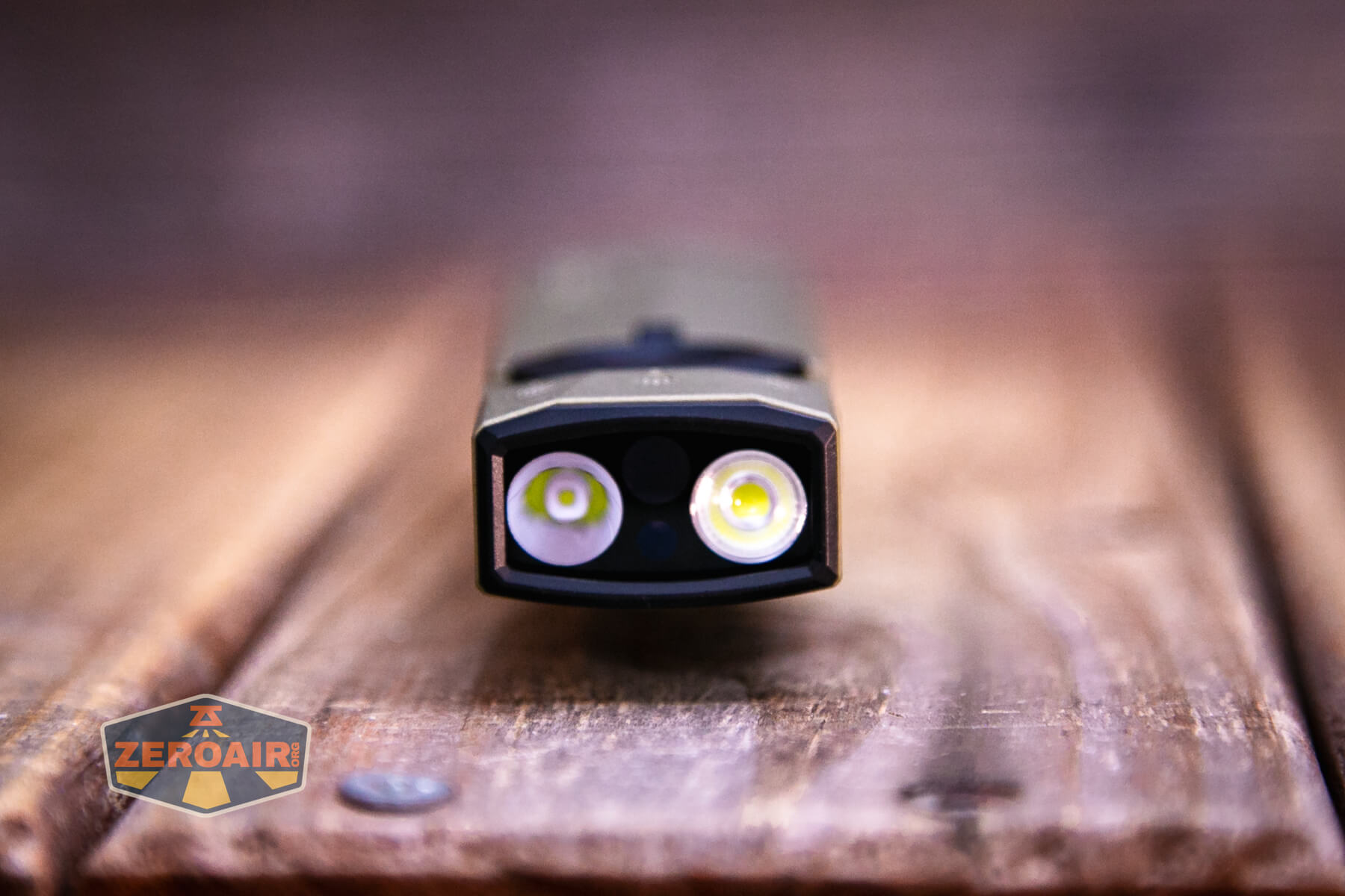 One big and fantastic update is the indicators (not pictured). They’re in a ring between the rotary and the e-switch. The left side indicates the output level, while the green right side indicates the charge status. Not pictured, but there’s a little illuminated lock icon when the light is put in lockout mode, too! That’s at the top.