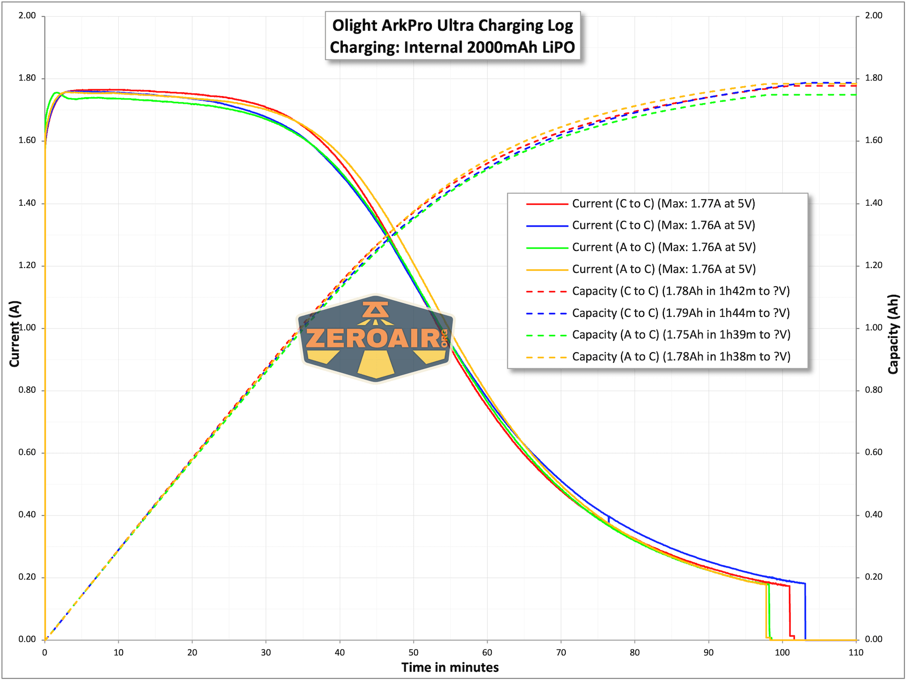 I only tested charging with USB-C. USB-C charging works great with A to C and C to C both. Charging completes in about 1.5 hours. ArkPro and ArkPro Ultra seem to have about the same charging.