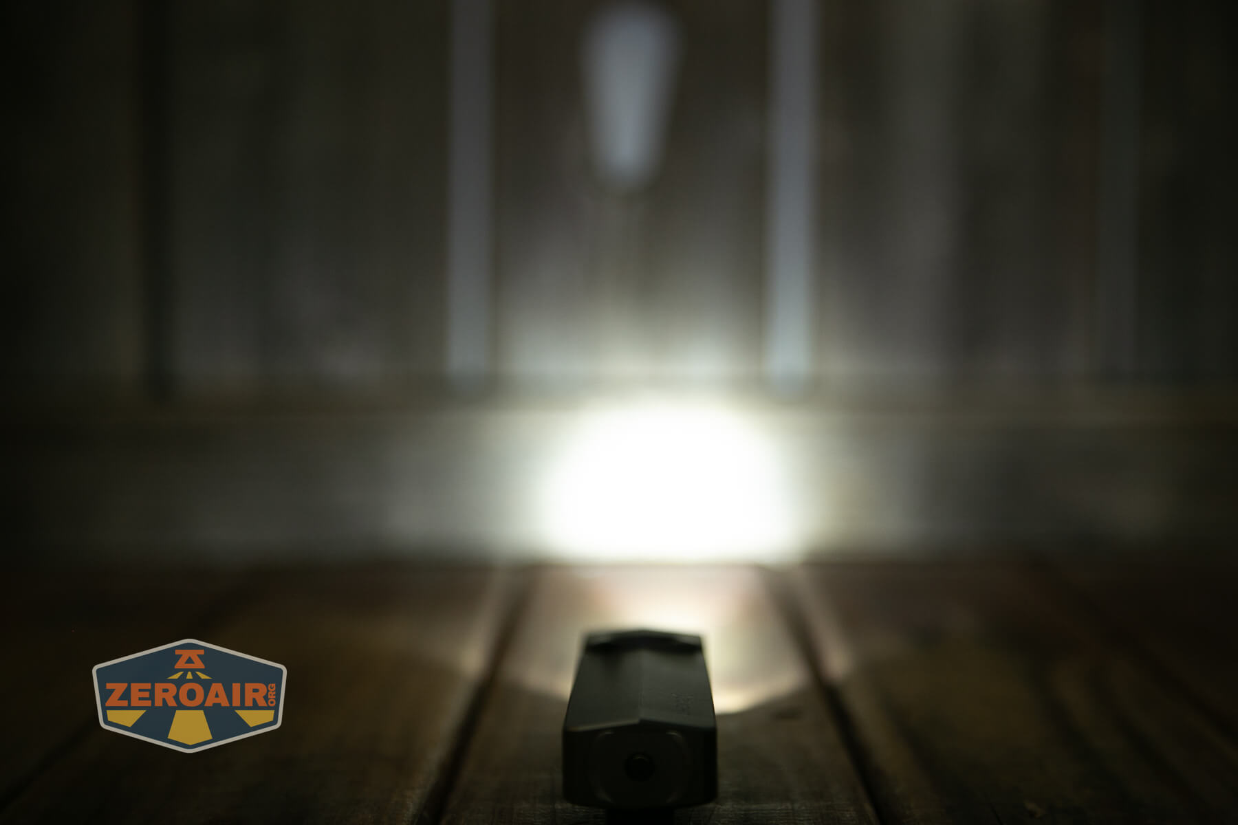Olight states this as a 2000mAh battery, and that’s perfectly logical. (A Reddit user has confirmed it, too). I was unable to gain any access to the LiPO, but I did run a couple of output tests. There is a battery indicator surrounding the switch, and it does indicate when the voltage is low. The light finally shuts off, too.