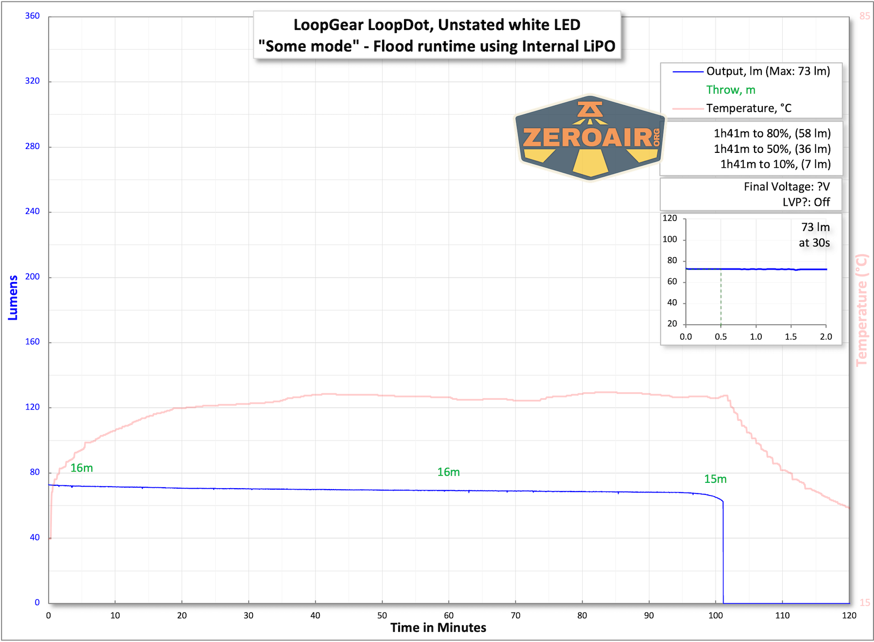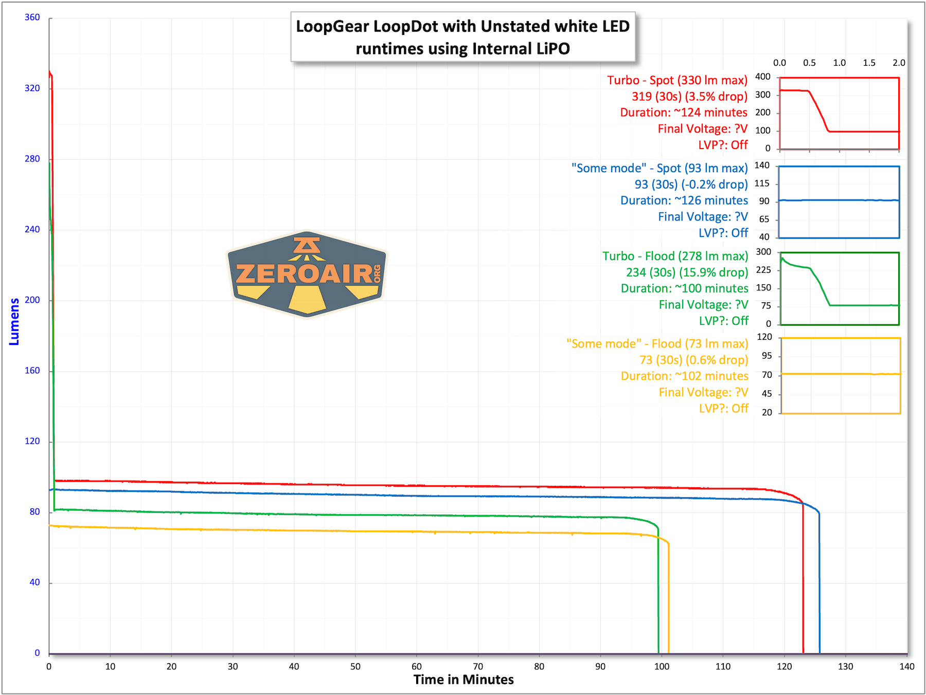 Mode Mode Claimed Output (lm) Claimed Runtime Measured Lumens
