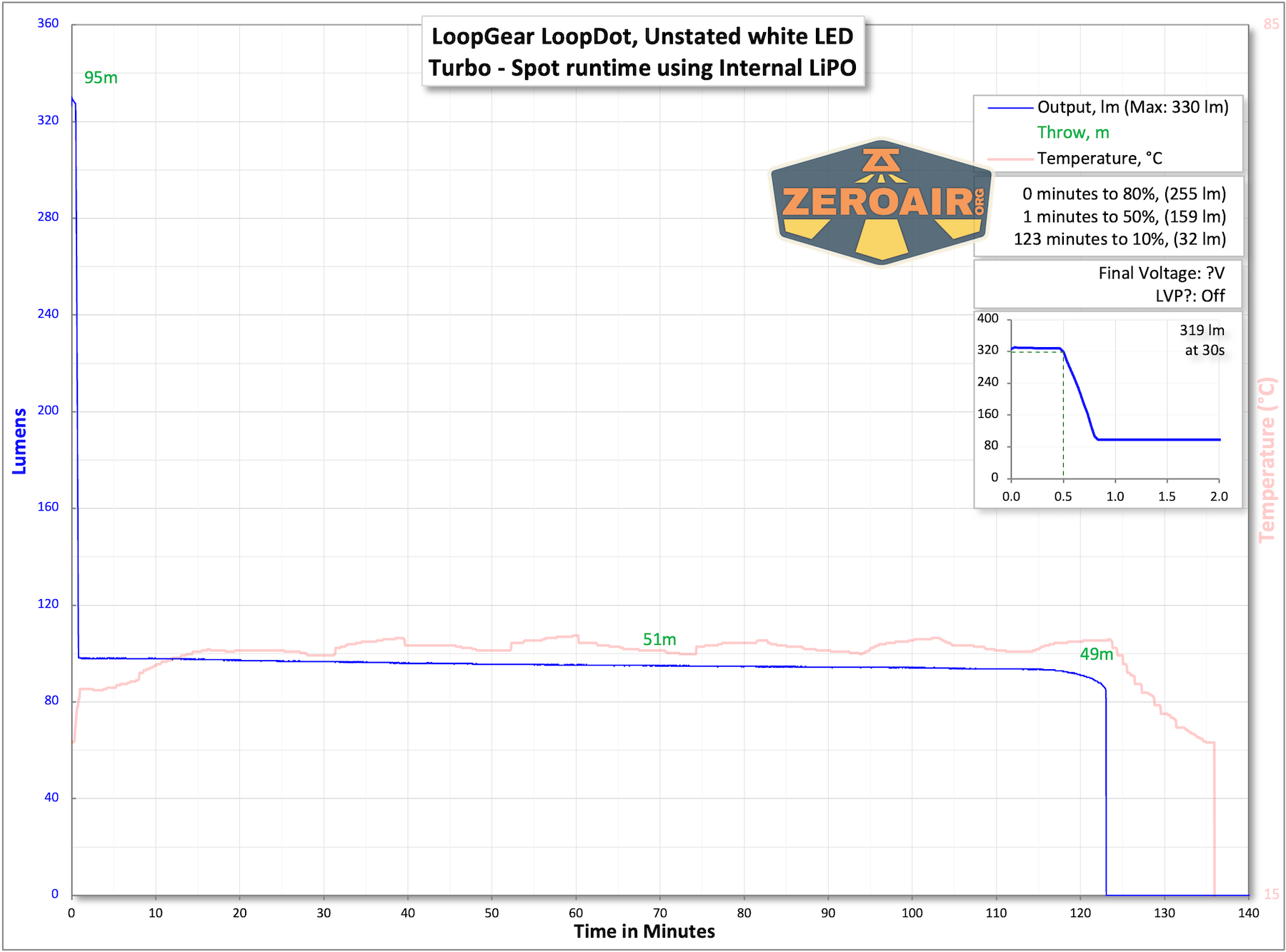 Measured Lumens (at 30s) Spot: 319 (79.8% of claim)^