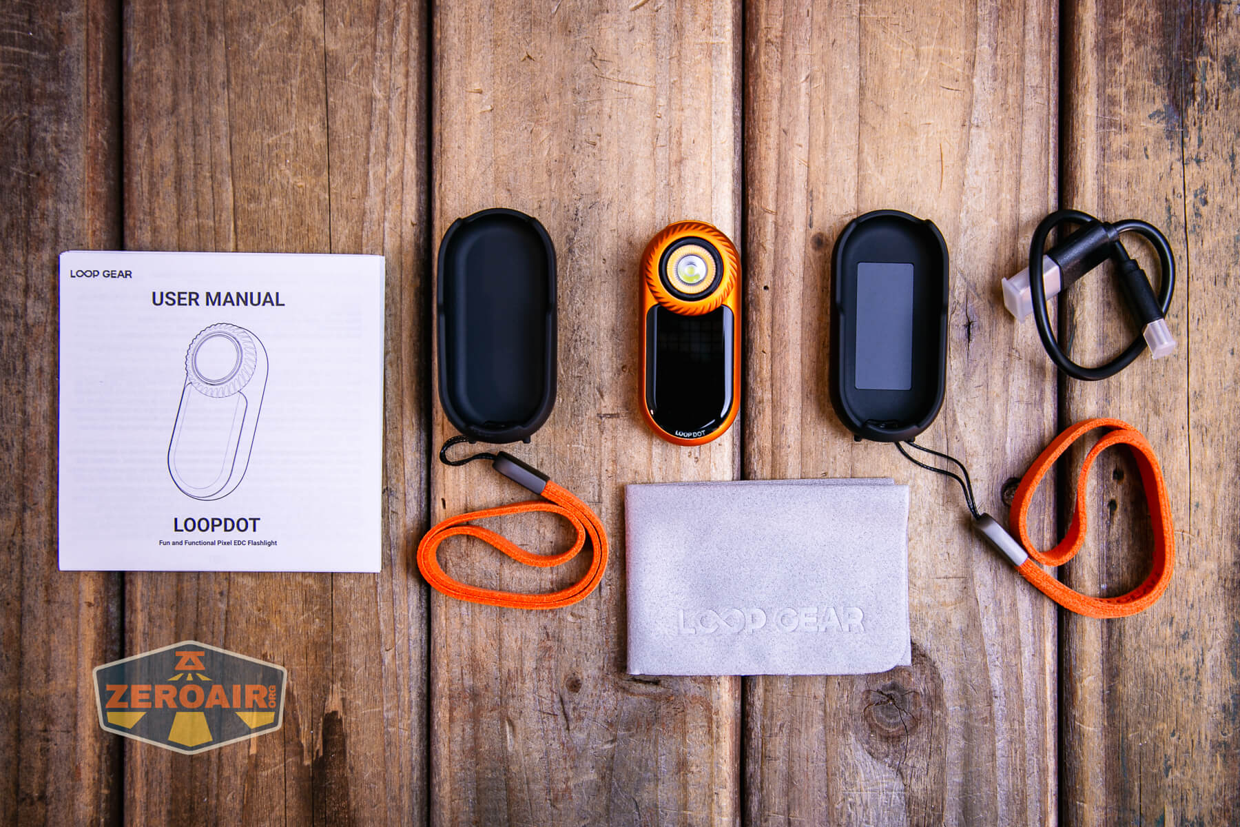 LoopGear LoopDot Orange Pixel Display EDC flashlight what's included