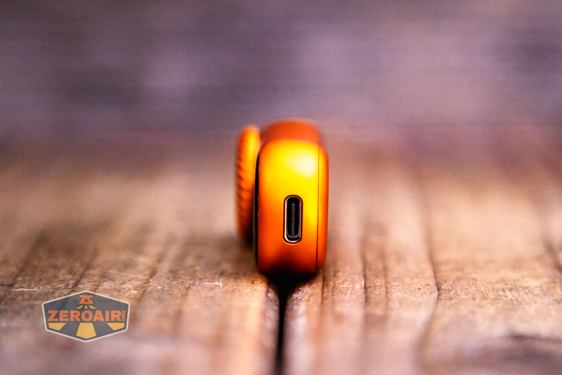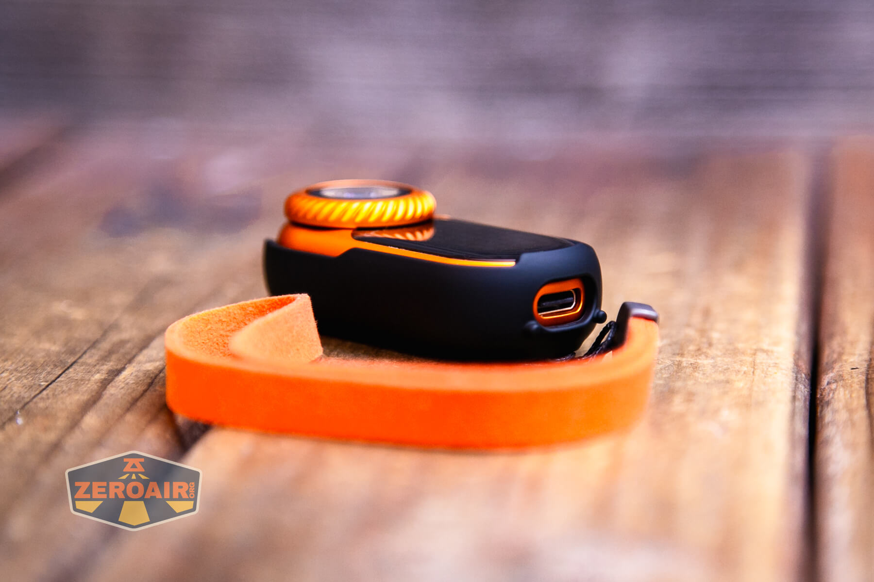 The LoopGear LoopDot Orange Pixel Display EDC flashlight uses USB-C charging. Neither the case nor the light itself have covers over the charging port.
