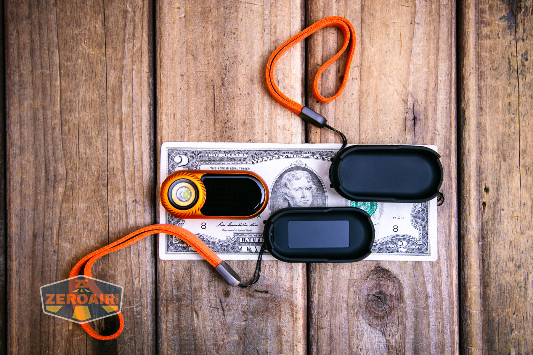 LoopGear LoopDot Orange Pixel Display EDC flashlight on a two dollar bill