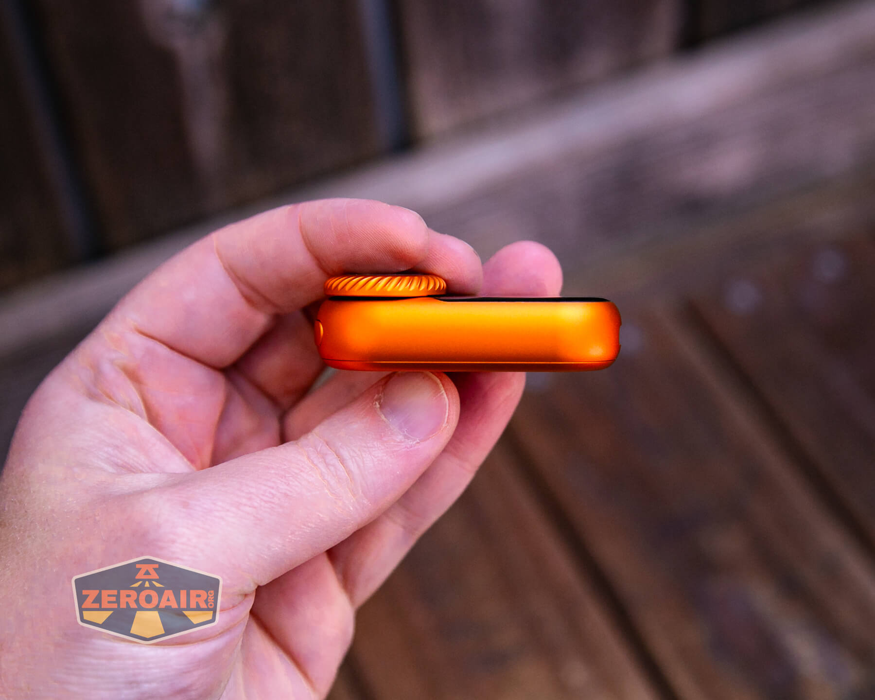 There are two ways to interact with the LoopGear LoopDot Orange Pixel Display EDC flashlight. First is the e-switch. It’s a big flat button on the top of the LoopDot.