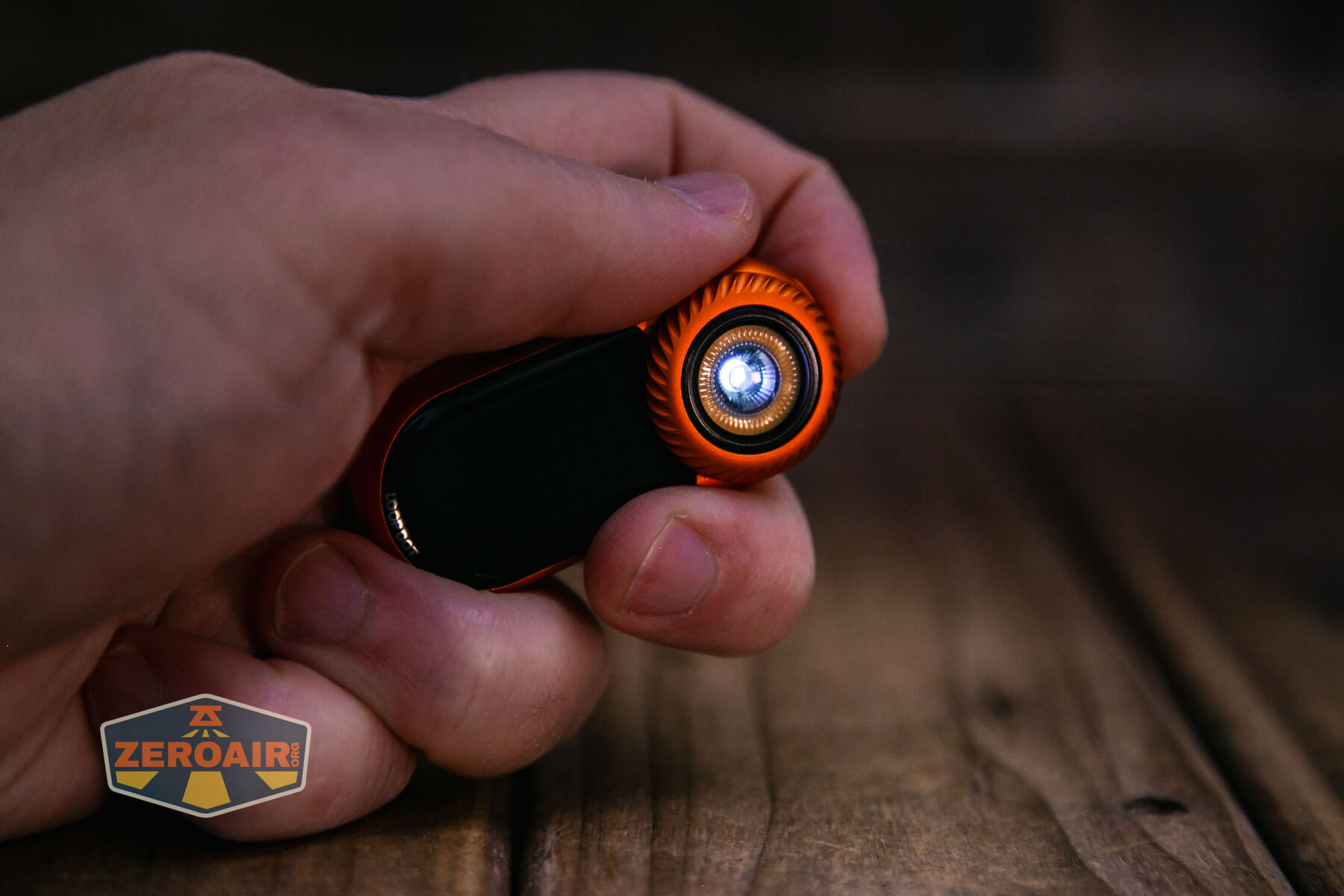 Here’s the LoopGear LoopDot Orange Pixel Display EDC flashlight in hand: