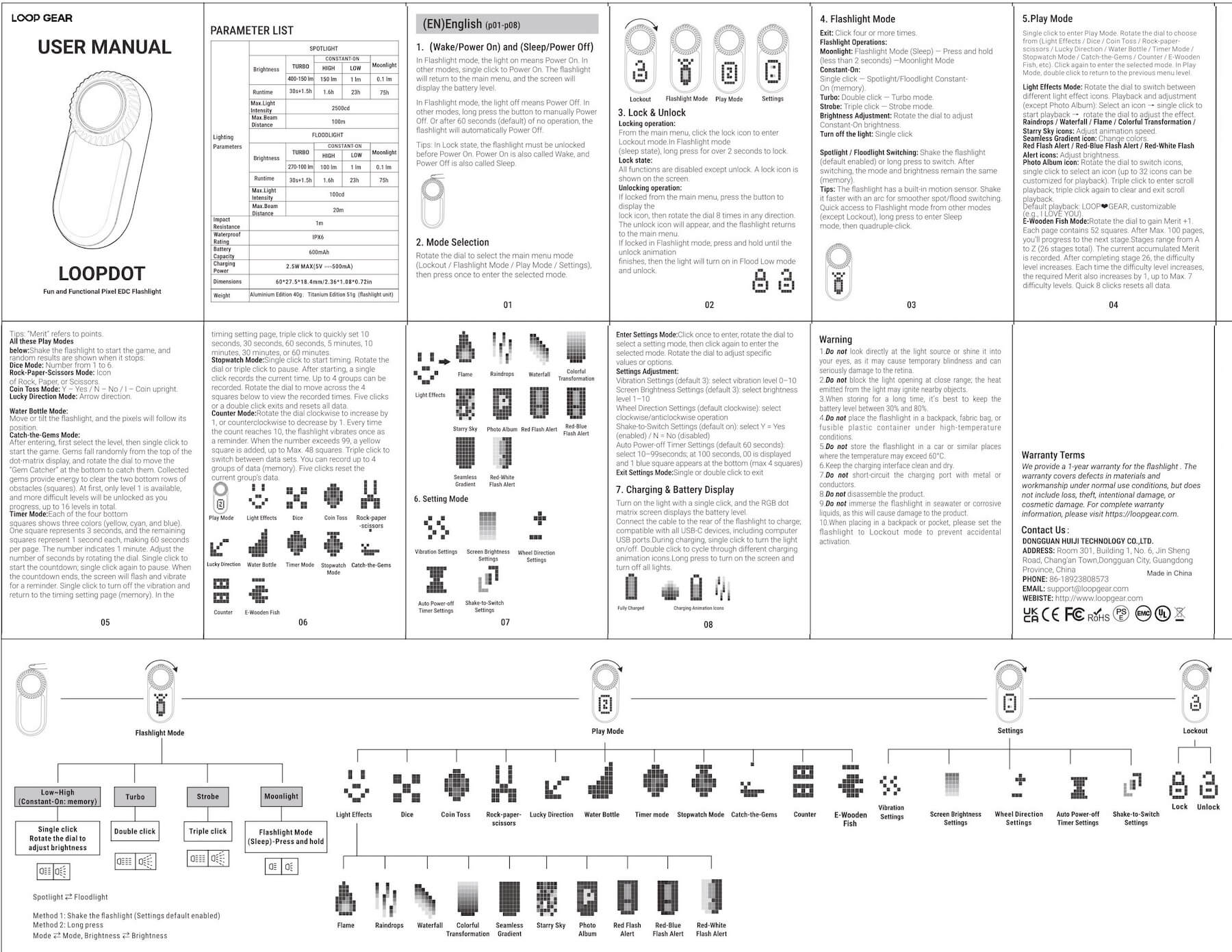LoopGear LoopDot Pixel Display EDC flashlight charging charts