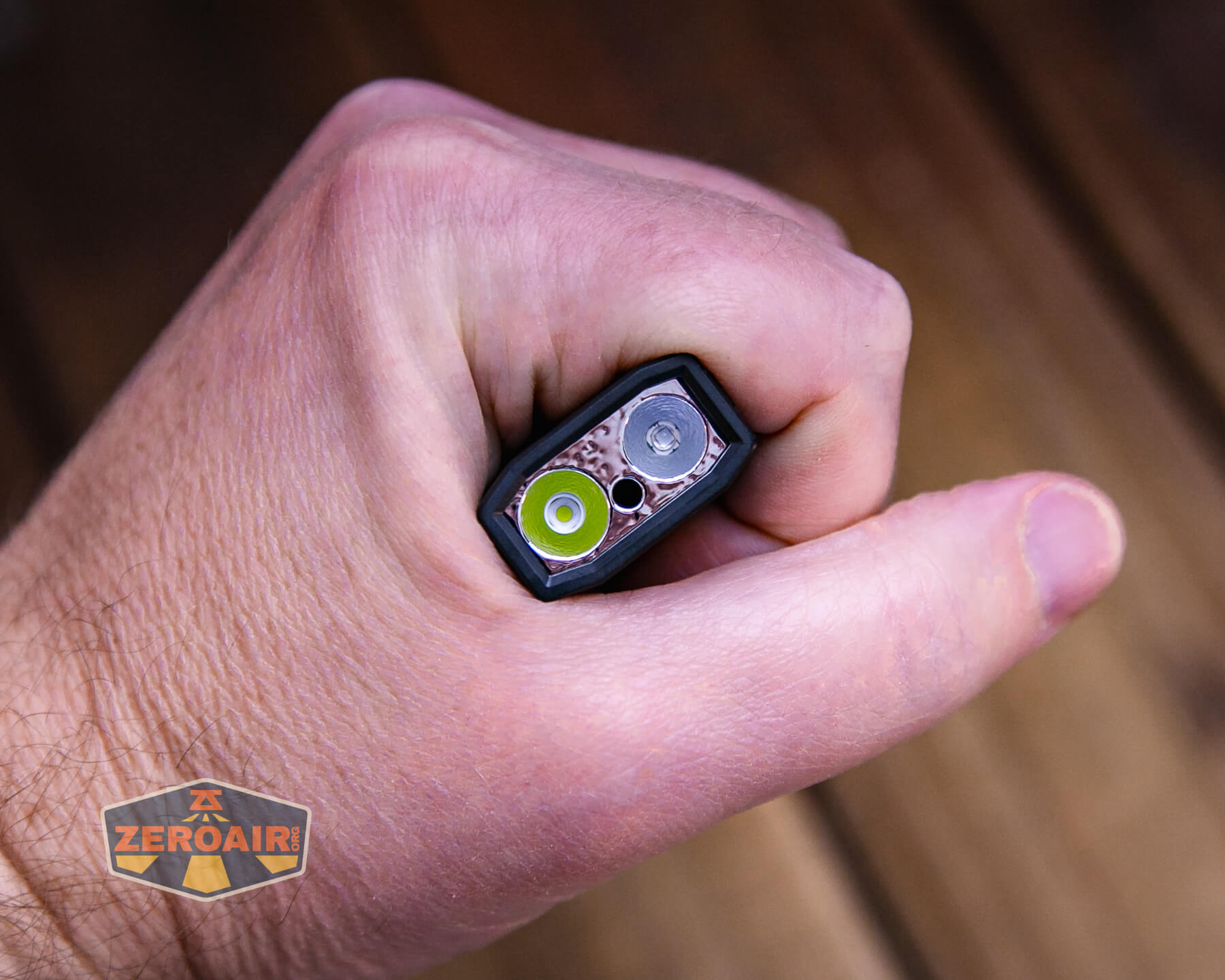 Also in the photo above, my Standard Reference Material (SRM) flashlight is the Hanko Machine Works Trident, an 18350 light. While I have not reviewed or tested the Gunner Grip version seen here, I have tested a Hanko Machine Works Trident Total Tesseract in brass. I love the Trident, and it’s a striking contrast to the inexpensive Convoy S2+, another great SRM.