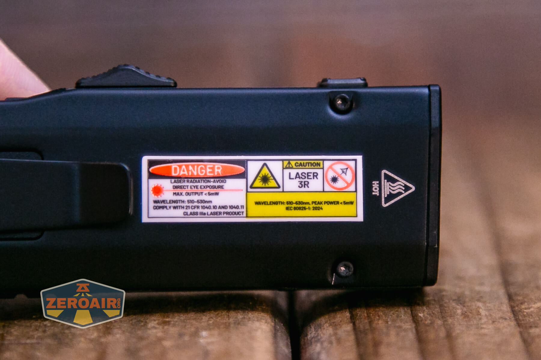 The white LED emitter is Nitecore’s NiteLab UHi 25 LED. Also, below you can see the UV emitter (which does not have a filter) and the laser (in the center).