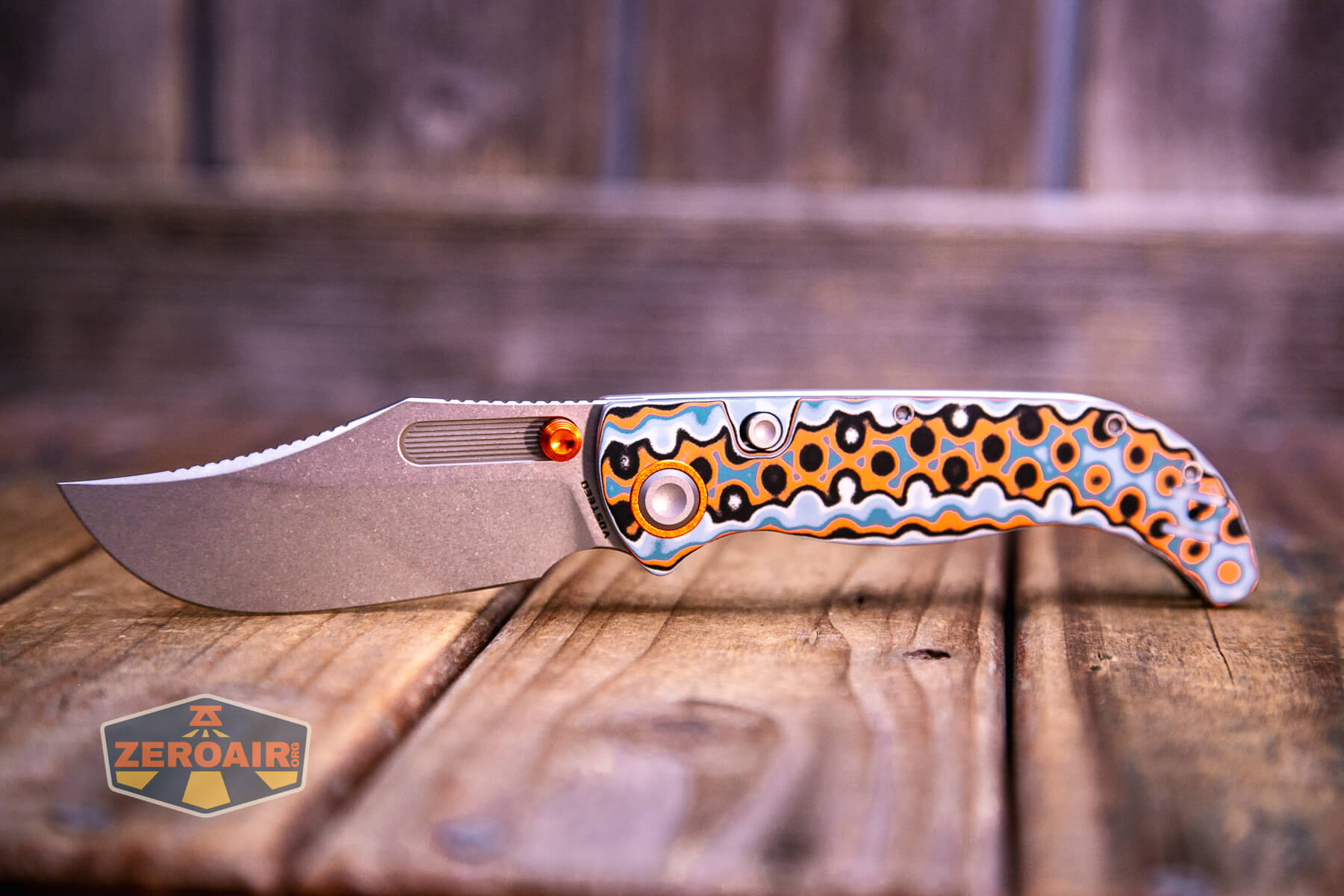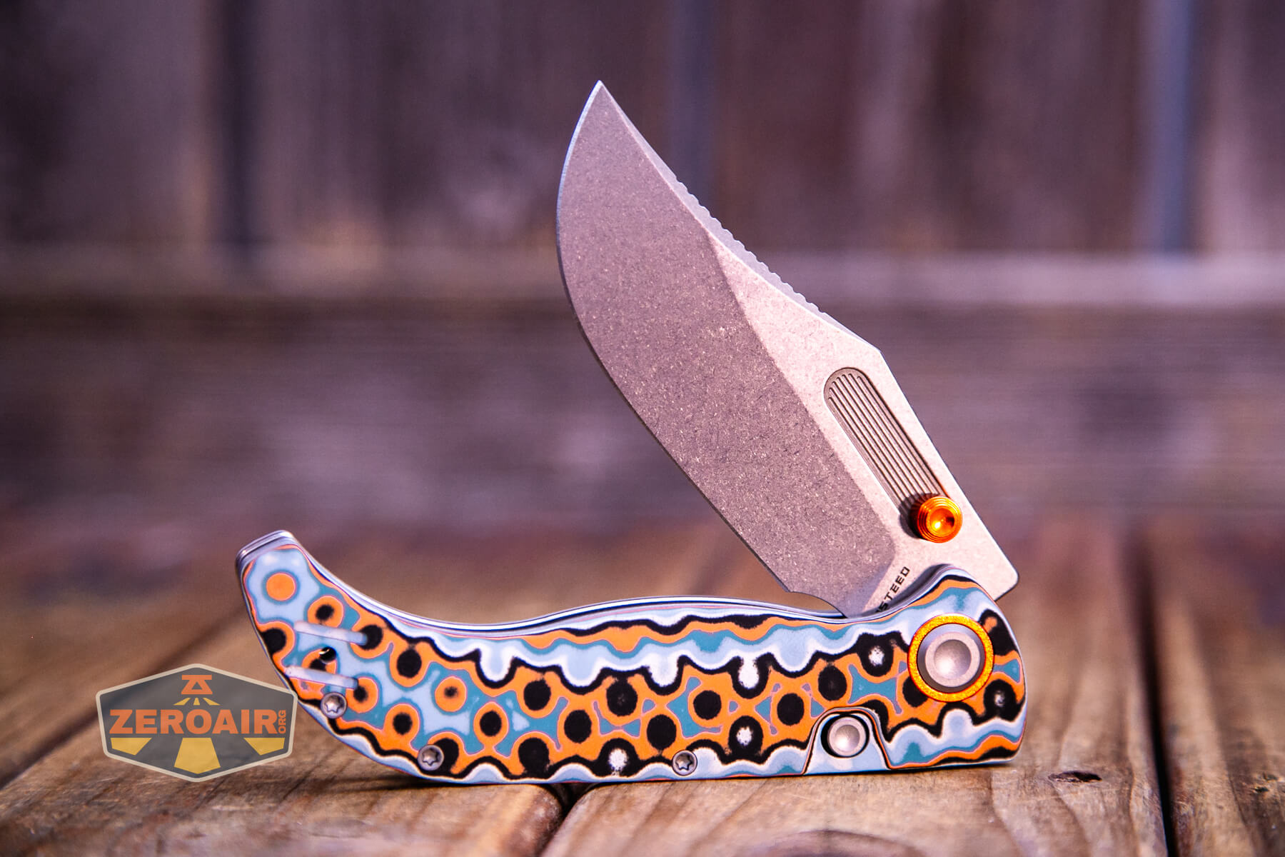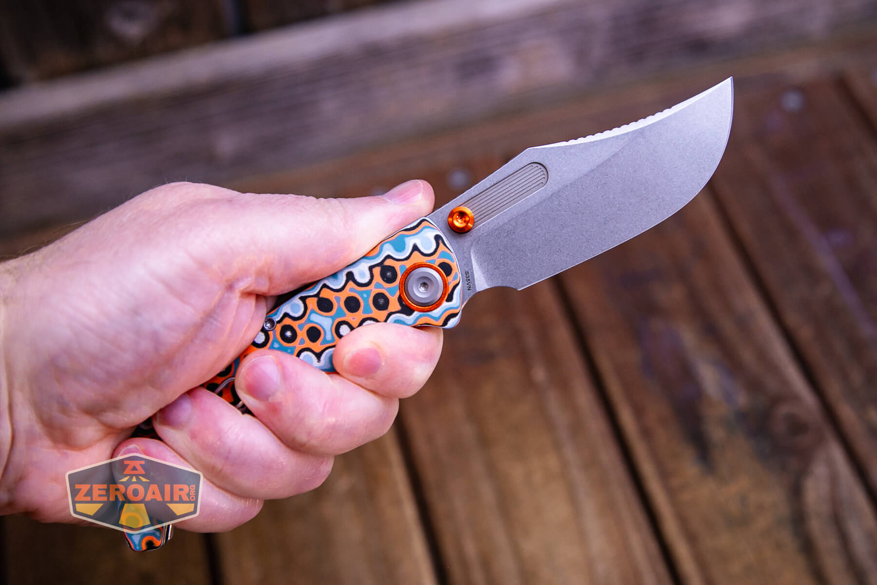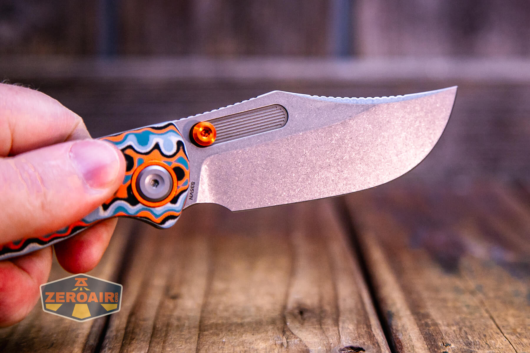 The blade finish is stonewashed, and that too is fantastic. I even love the blade shape (but more on that one later.)