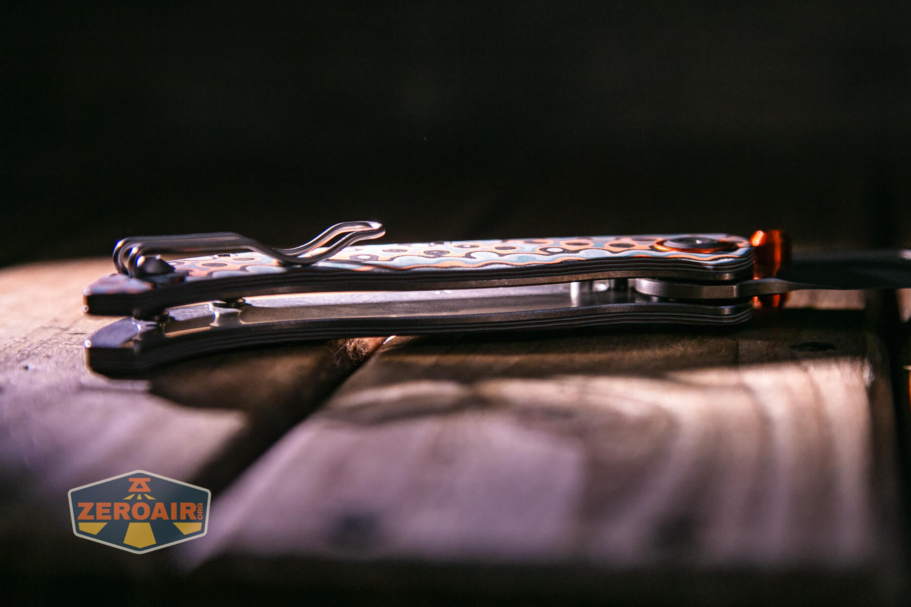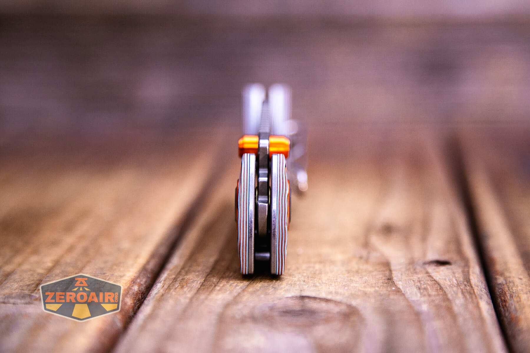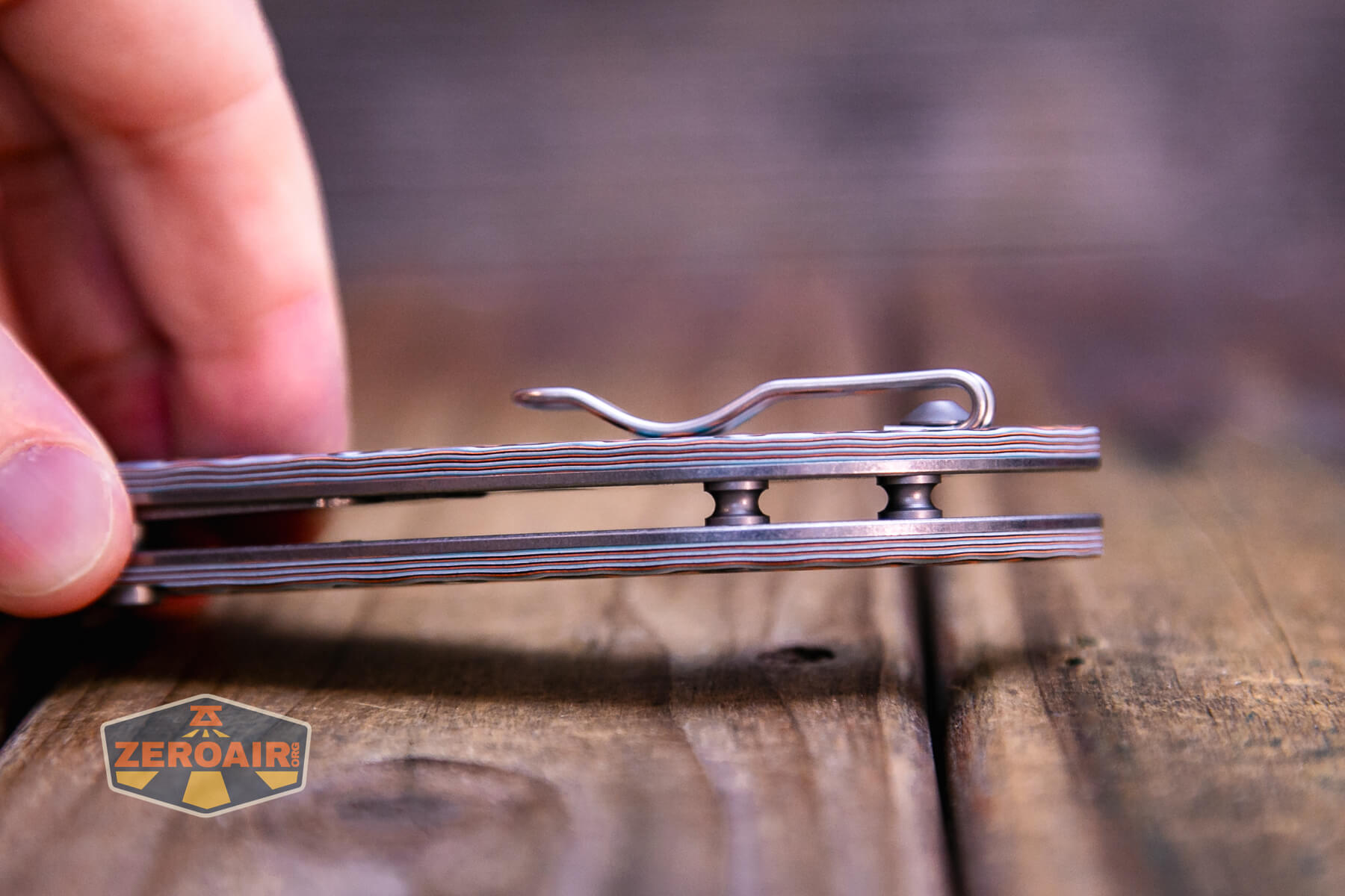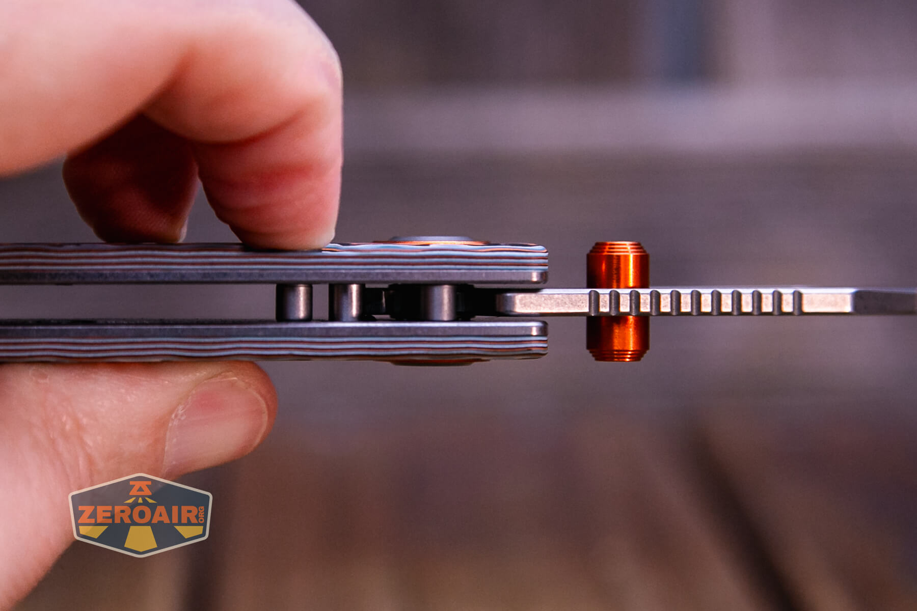 The Vosteed Naga S35VN knife has full metal liners that are not skeletonized. So there’s a ton of stiffness, but no weight reduction from cutouts.