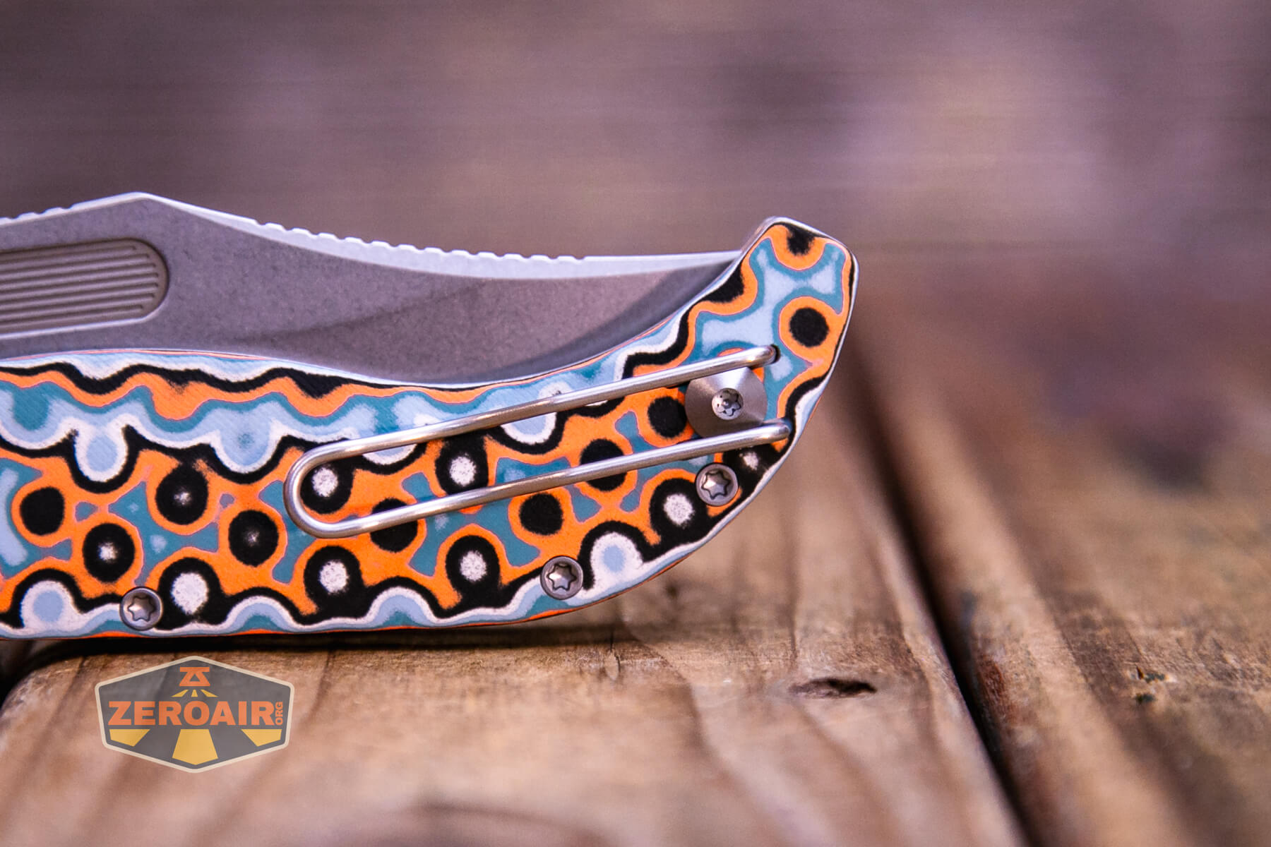 The Vosteed Naga S35VN knife has a paperclip-style pocket clip held in place by one TORX screw.