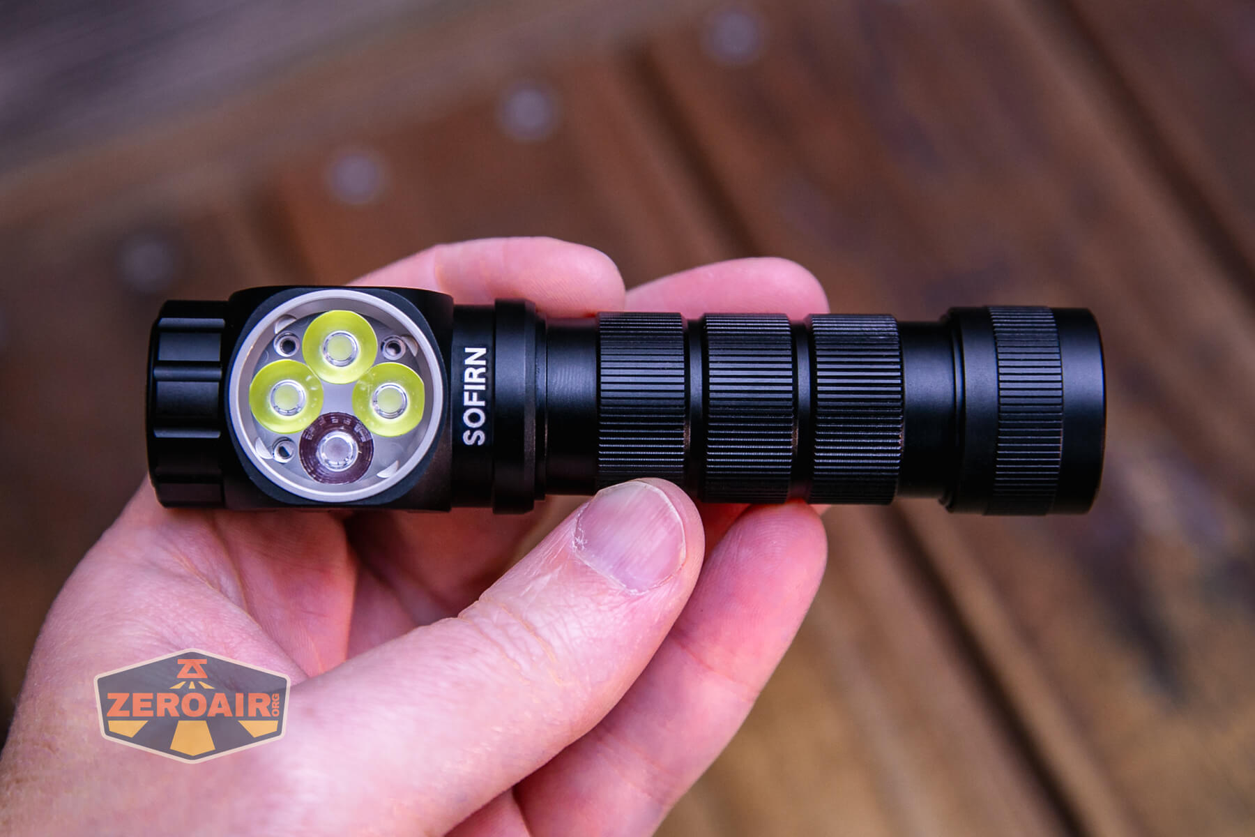 The Sofirn HS43 headlamp uses three TN-3535 emitters and one SST20R red emitter, and a quad optic.
