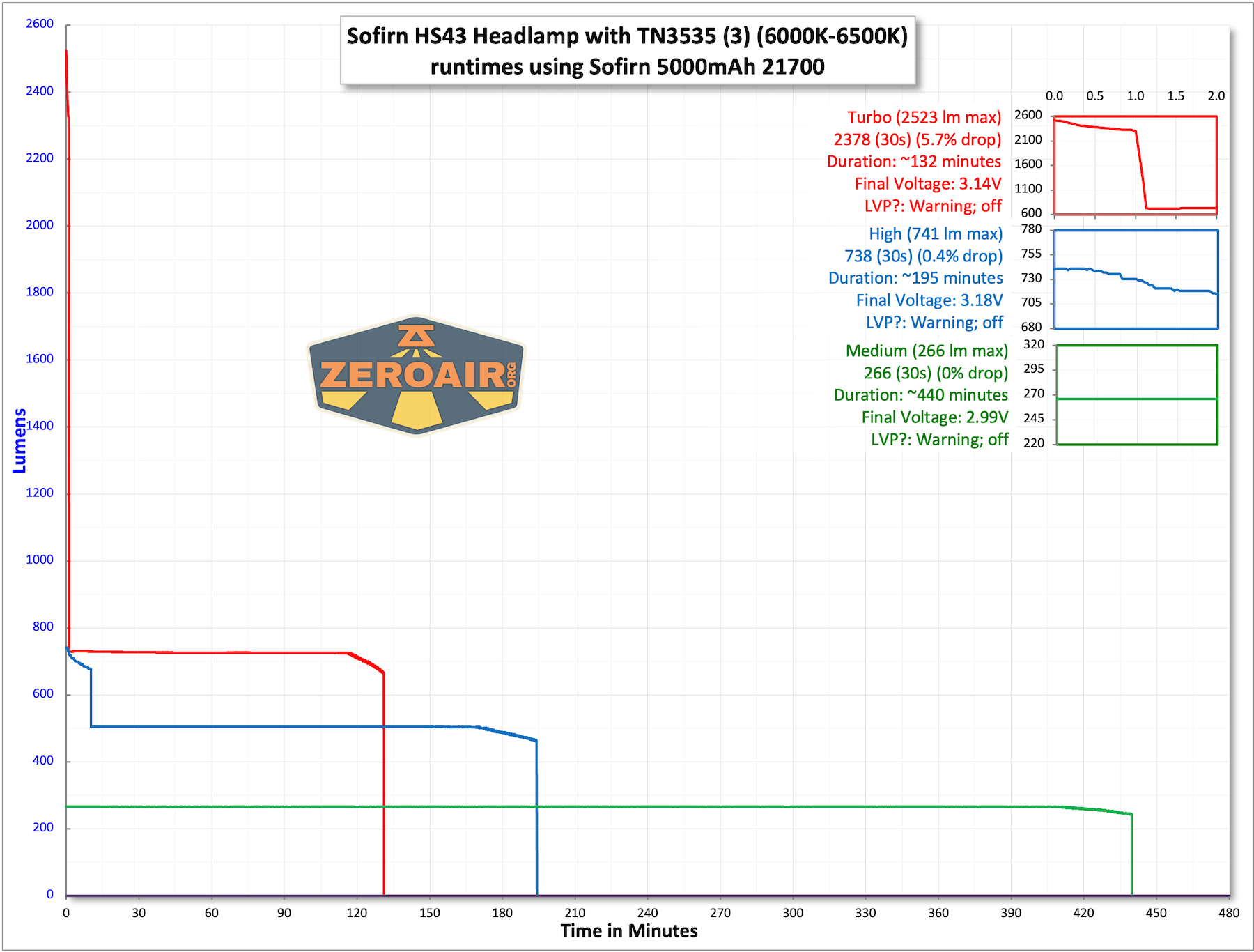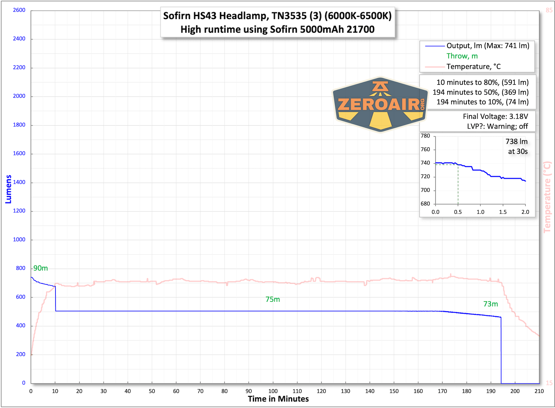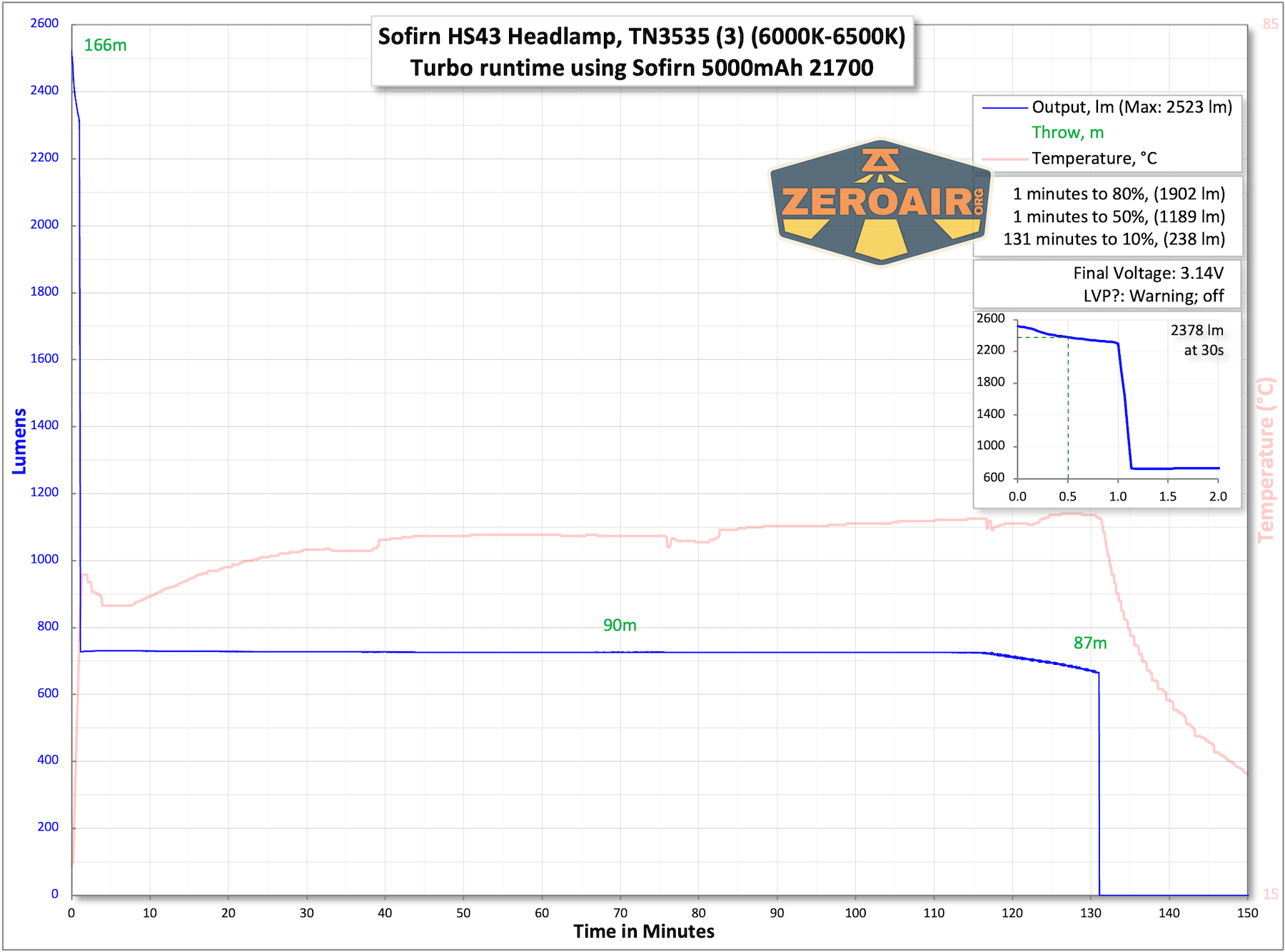 | Measured Lumens (at 30s) | 2378 (74.3% of claim)^ |