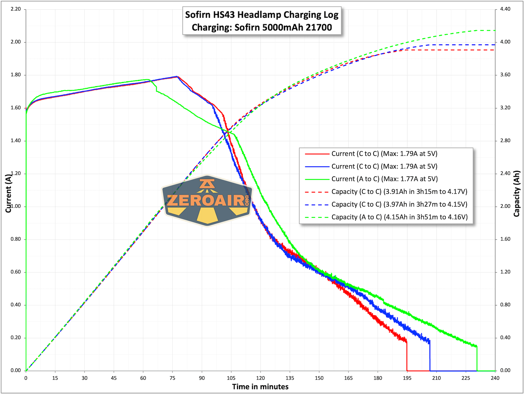 Charging from A or C to C works just fine and requires over three hours.