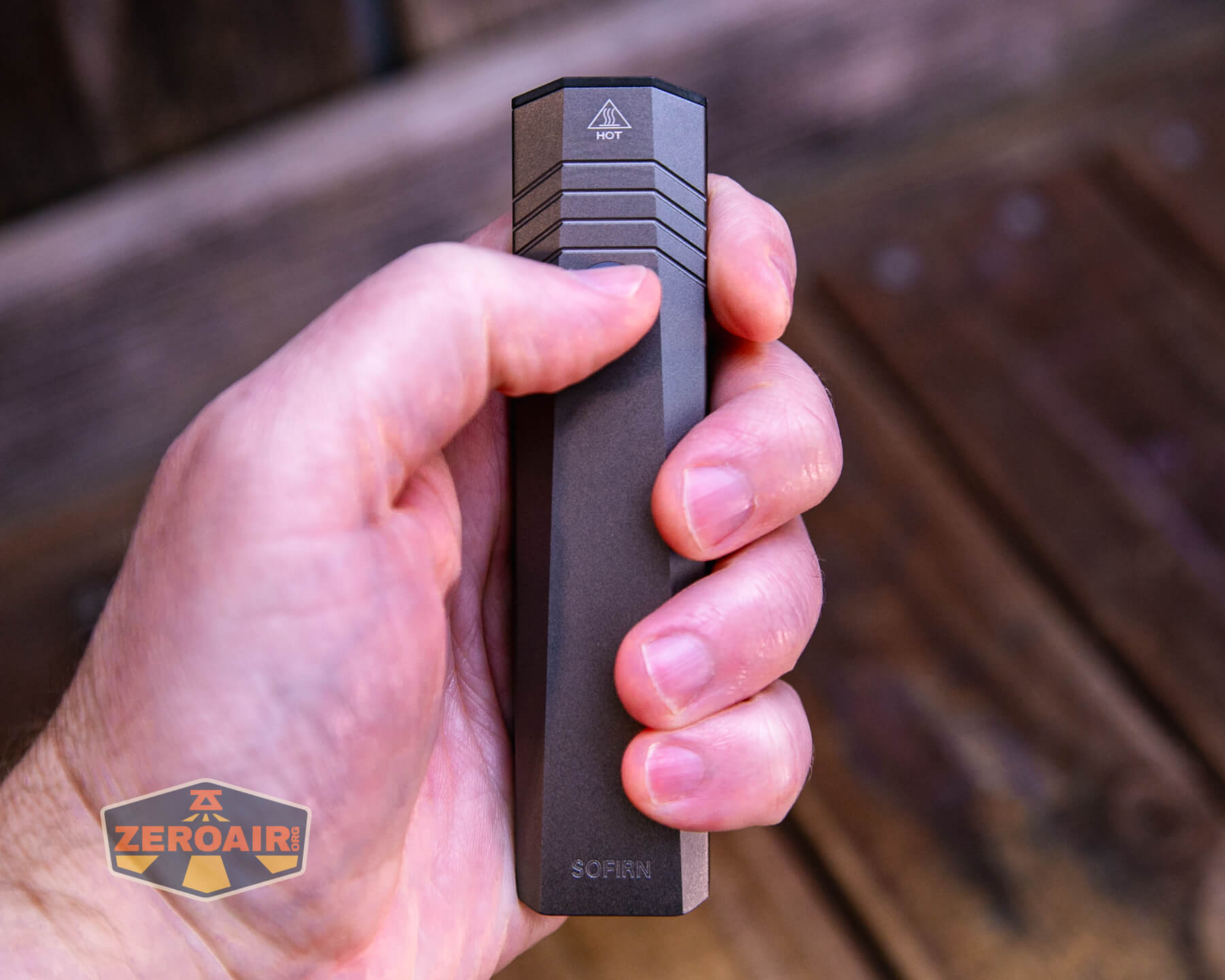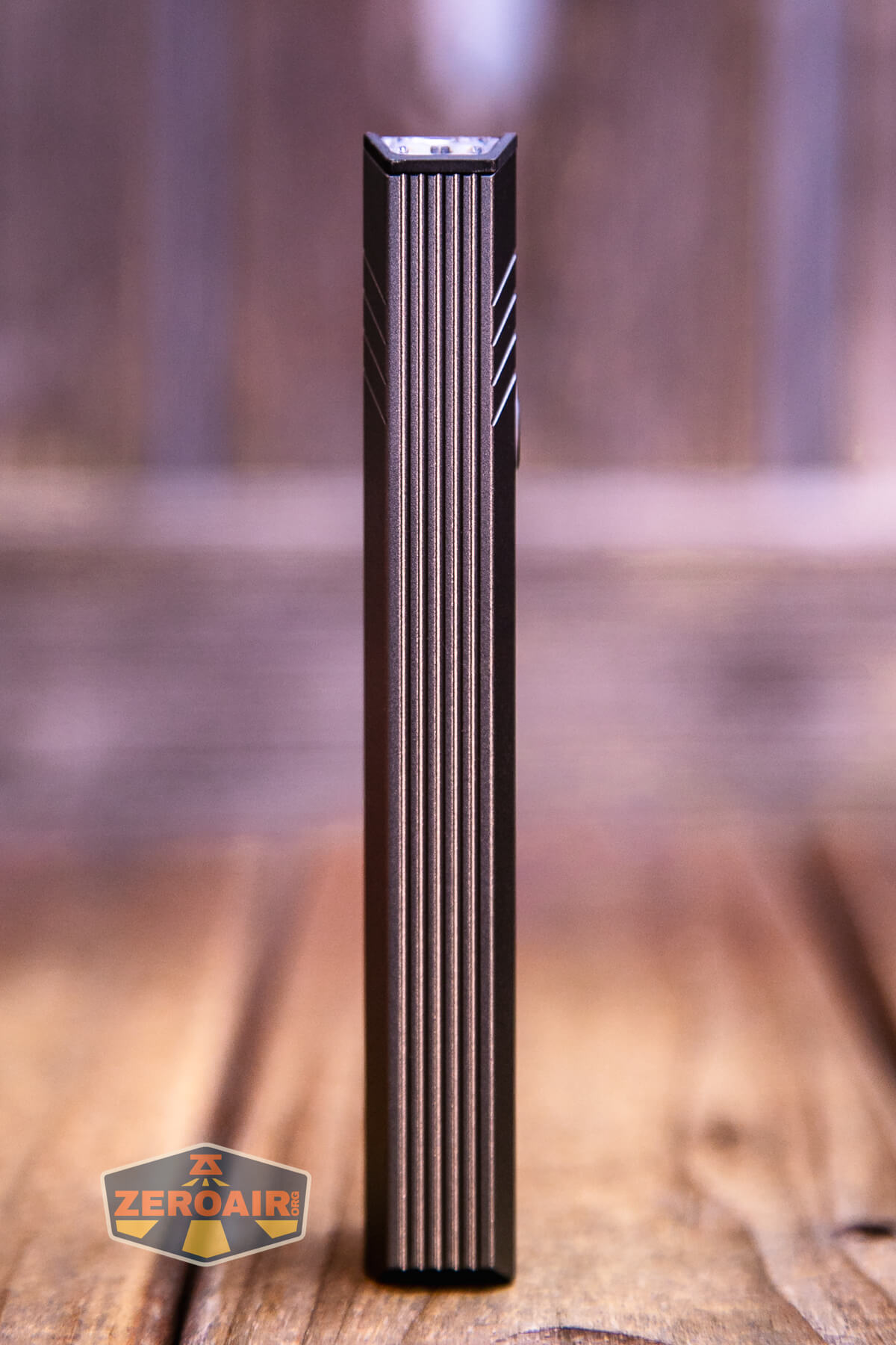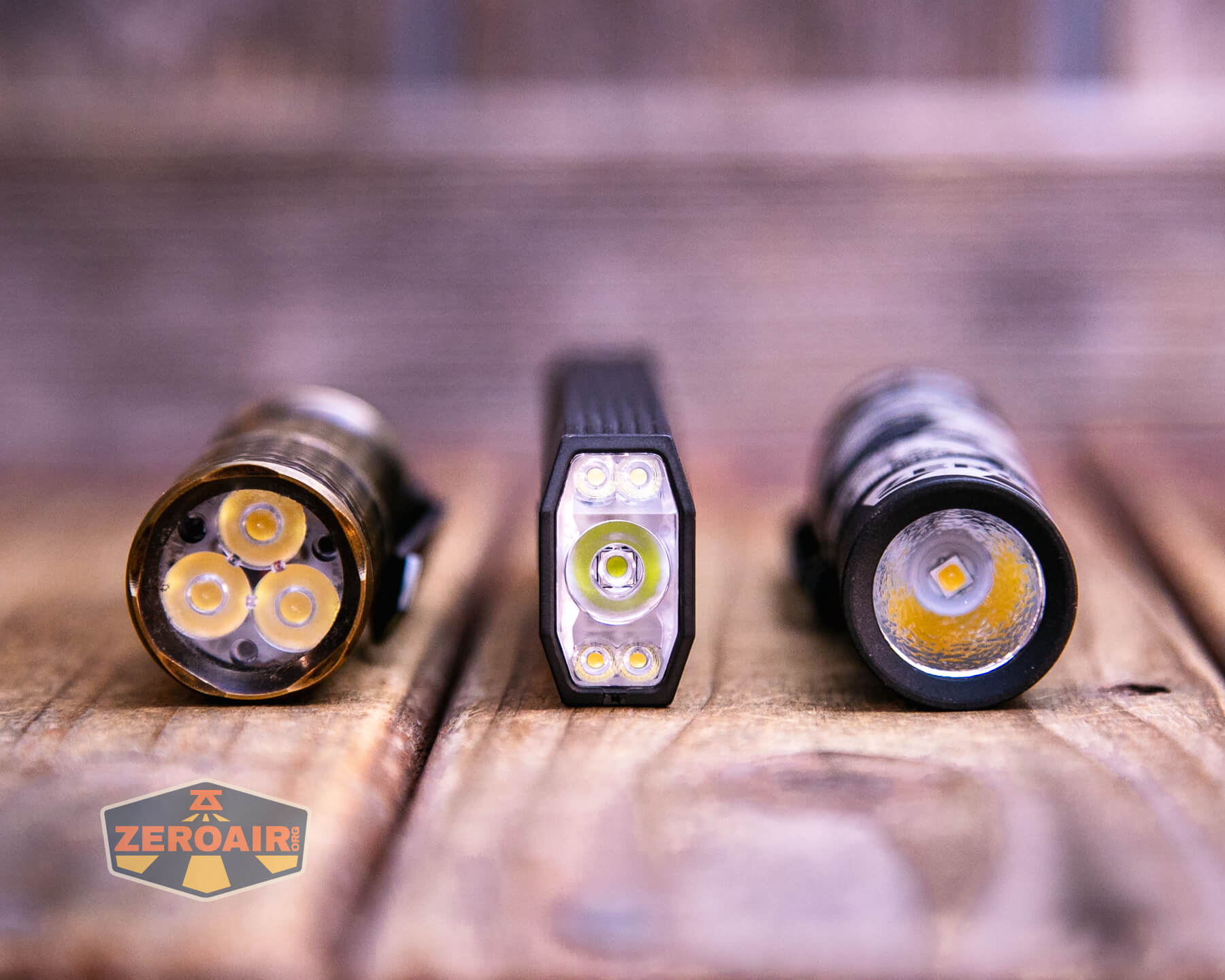 Also in the photo above, my Standard Reference Material (SRM) flashlight is the Hanko Machine Works Trident, an 18350 light. While I have not reviewed or tested the Gunner Grip version seen here, I have tested a Hanko Machine Works Trident Total Tesseract in brass. I love the Trident, and it’s a striking contrast to the inexpensive Convoy S2+, another great SRM.