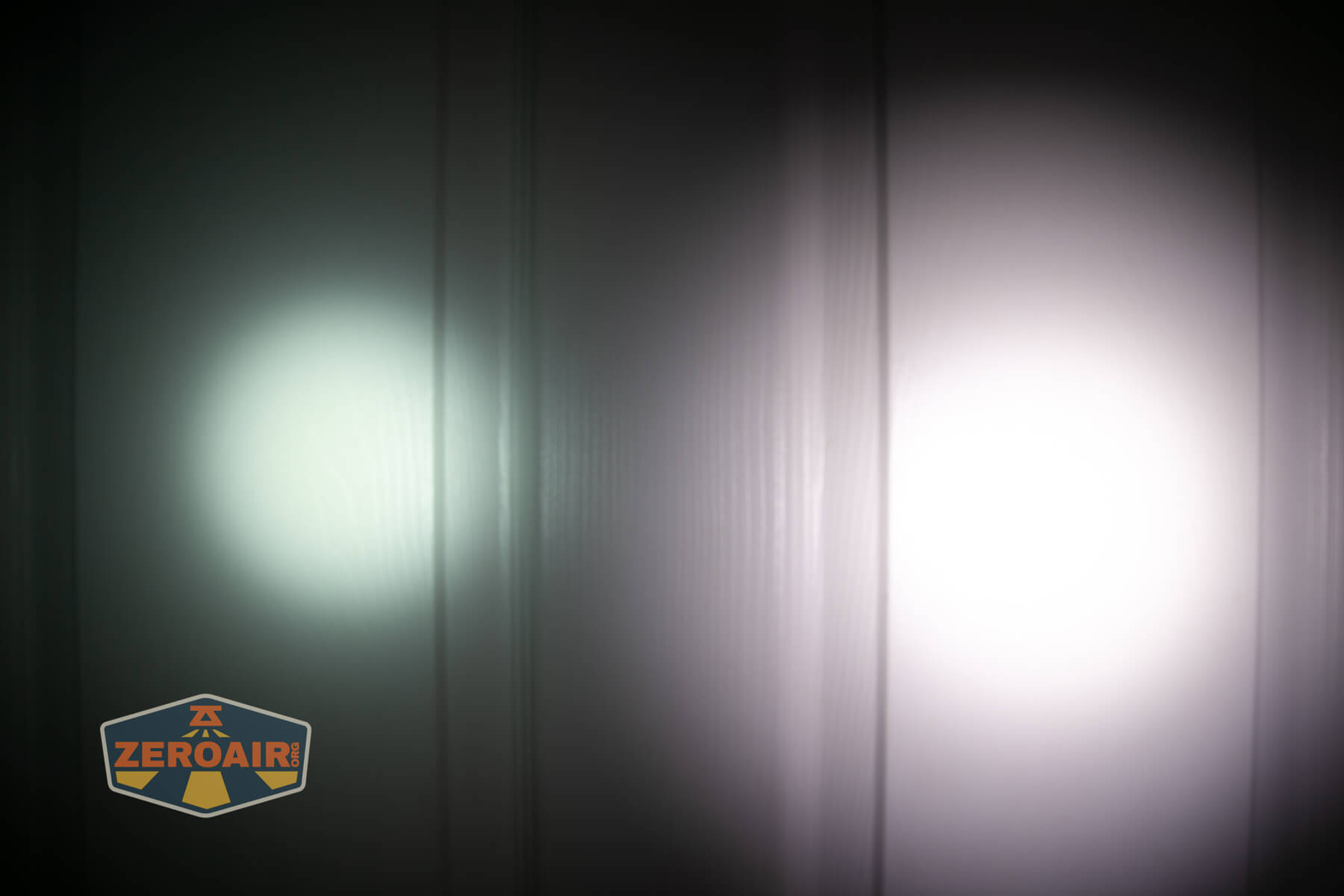 I keep the test flashlight on the left and the BLF-348 reference flashlight on the right. These photos are taken around 18 inches from the door.