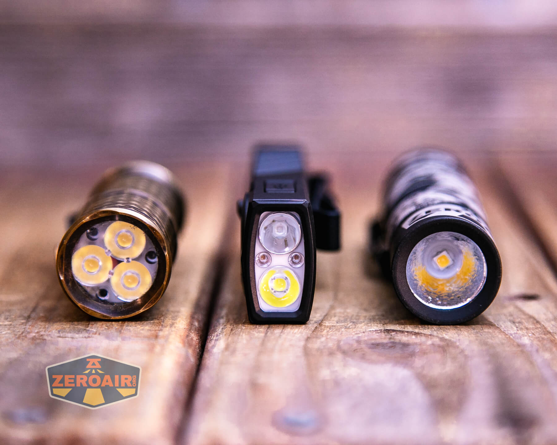 Some of the new ArkPros use Olights new emitter, but I’m not sure the Olight ArkPro Lite flashlight does. I’m not totally sure it matters, since we can see the CRI and CCT in the next section. These emitters have the best type of optic for their purpose. The white LED emitter has a shallow TIR, and the UV emitter has a deep, smooth reflector, and the dual red reflectors have very small TIRs.